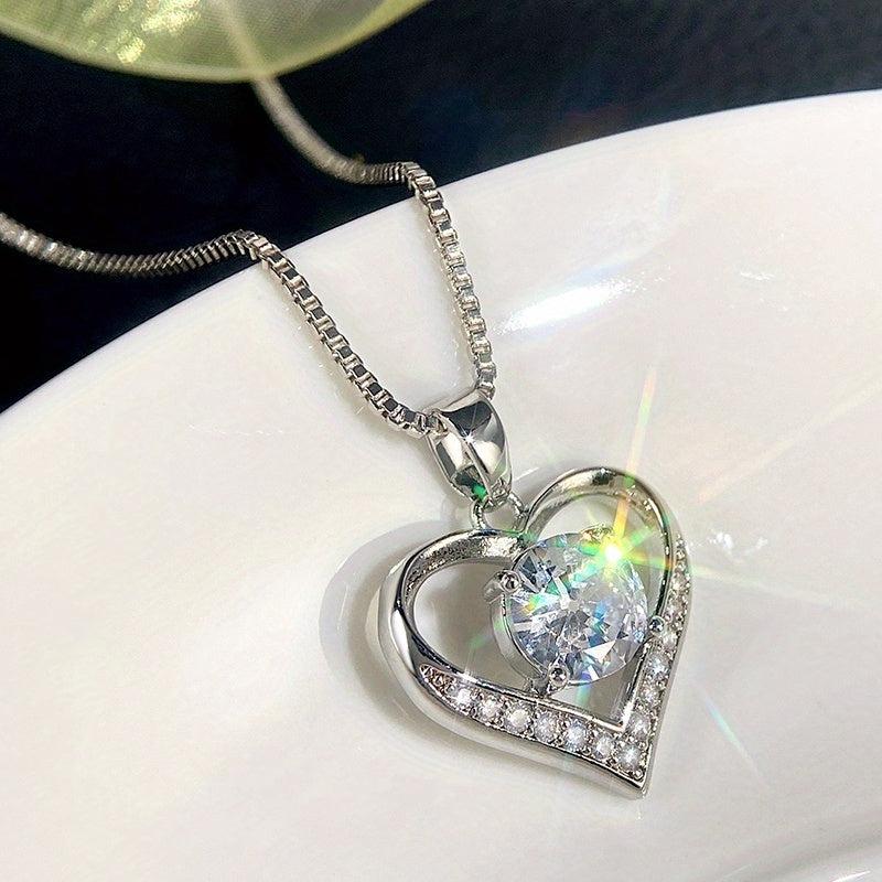 This stunning heart pendant necklace is the perfect accessory for weddings and anniversaries. Made of 925 silver plated material, it exudes romance and elegance.