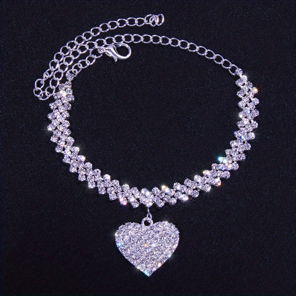 This anklet features a heart-shaped pendant on a delicate chain adorned with sparkling rhinestones. It is a perfect accessory for weddings and special occasions.