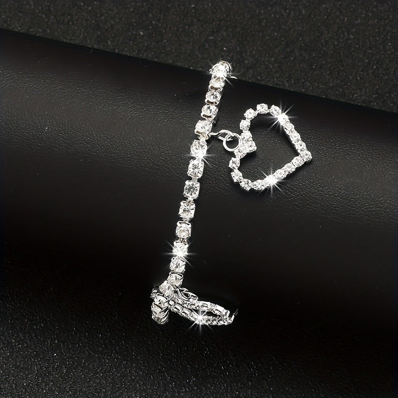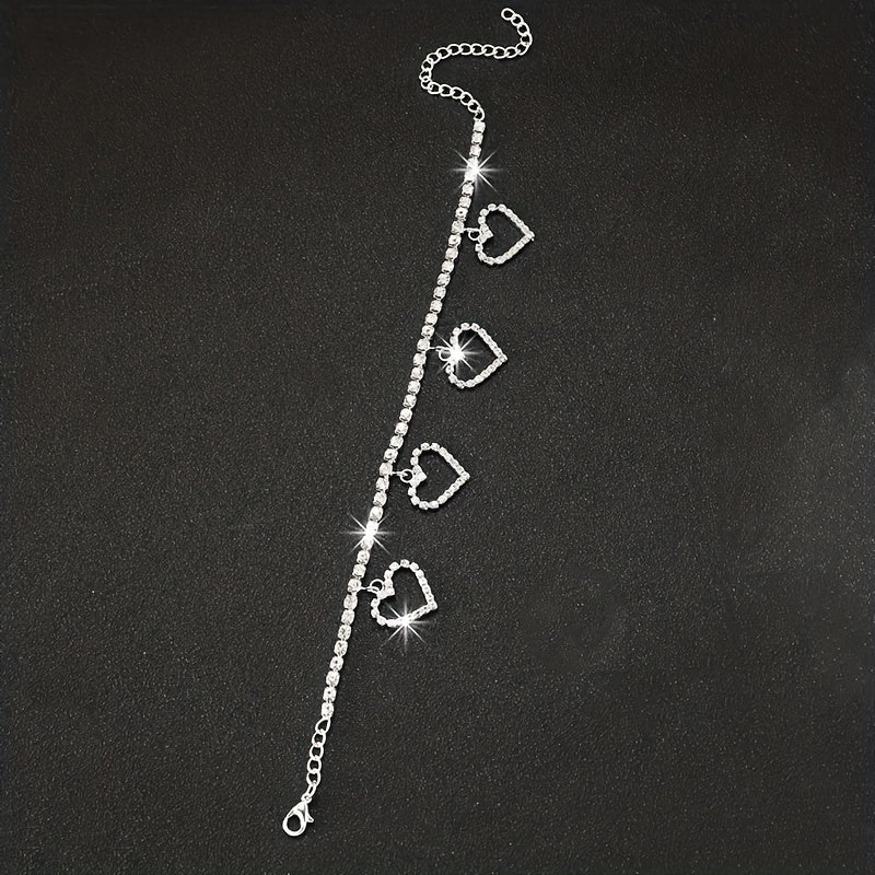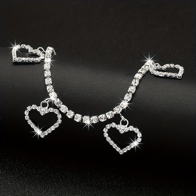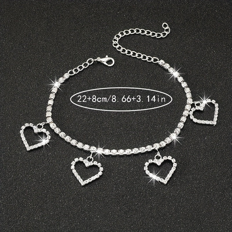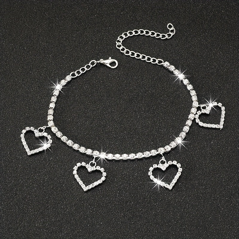 Elegant anklet featuring a hollow love heart pendant with inlaid rhinestones, perfect for adding a touch of romance to your look. Ideal for dating or everyday wear.