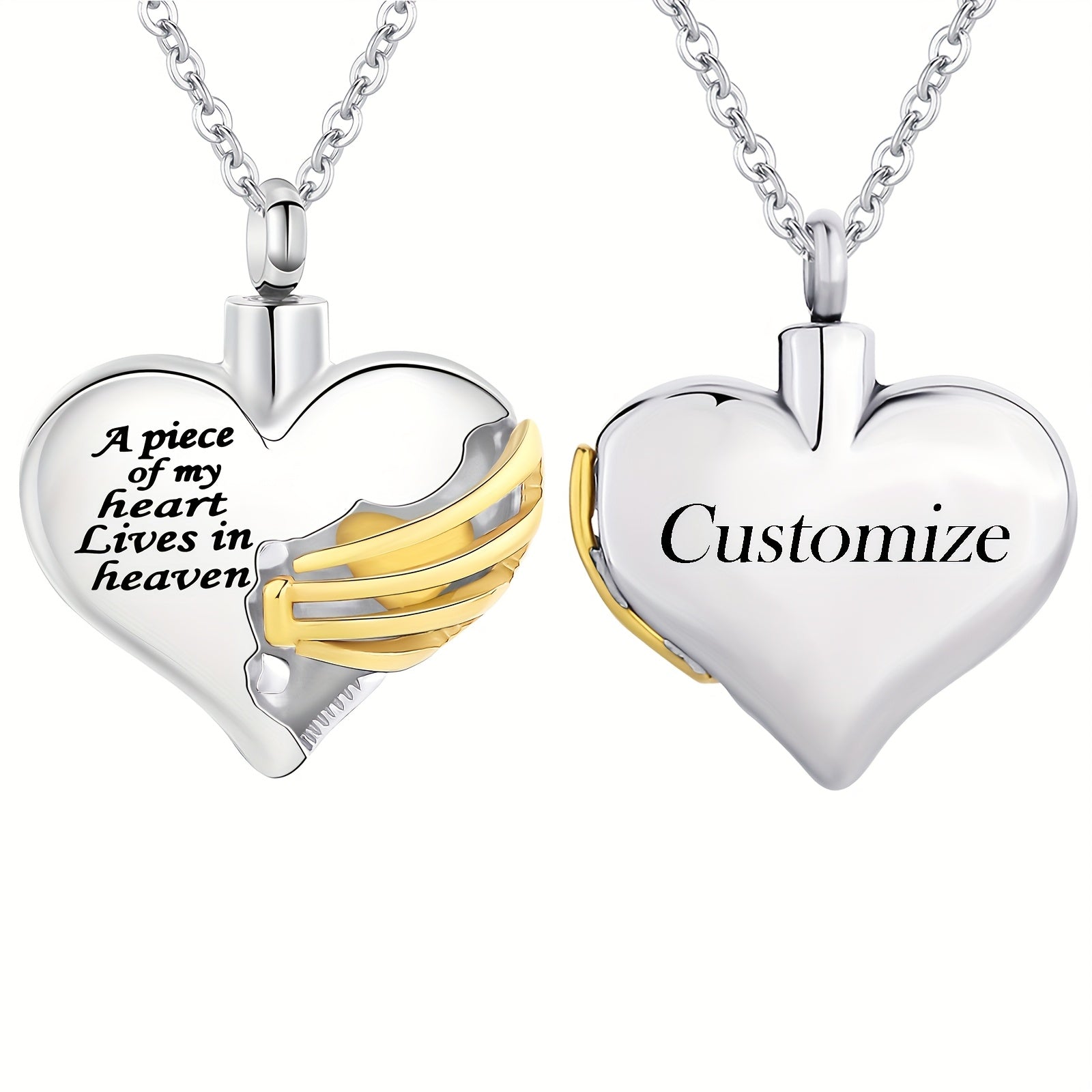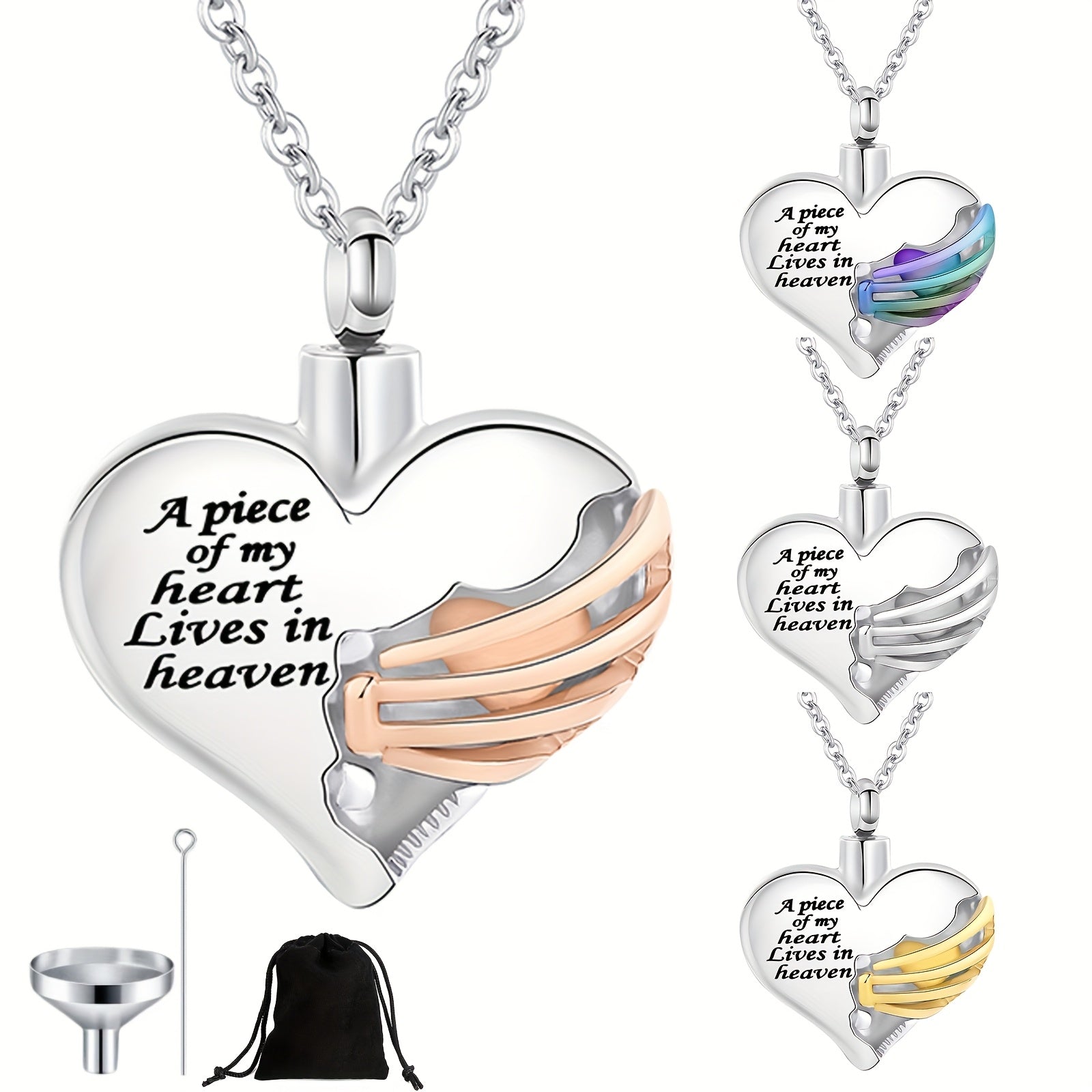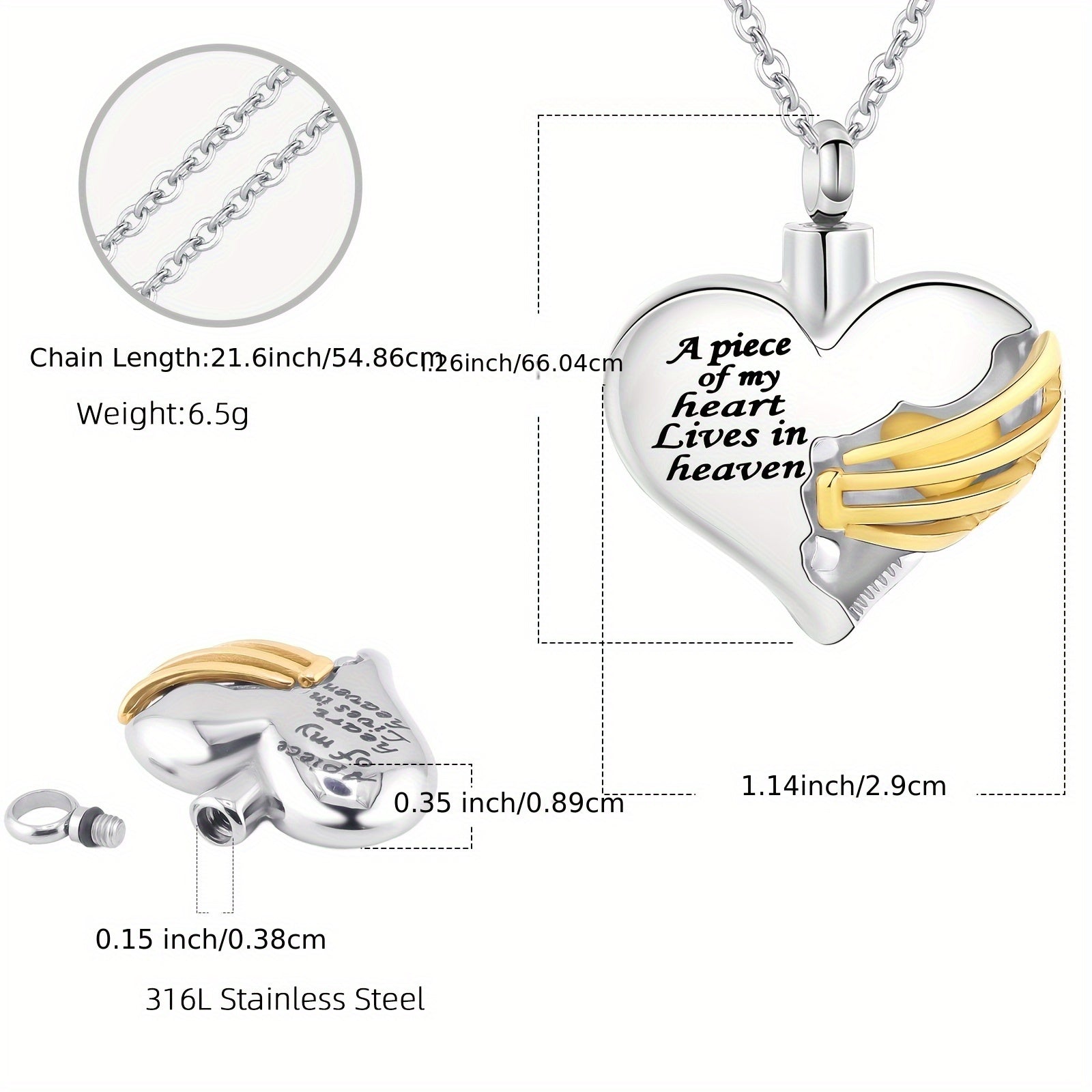 Keep your loved one close with this stainless steel heart pendant urn necklace. The pendant holds a small amount of ashes or a lock of hair.