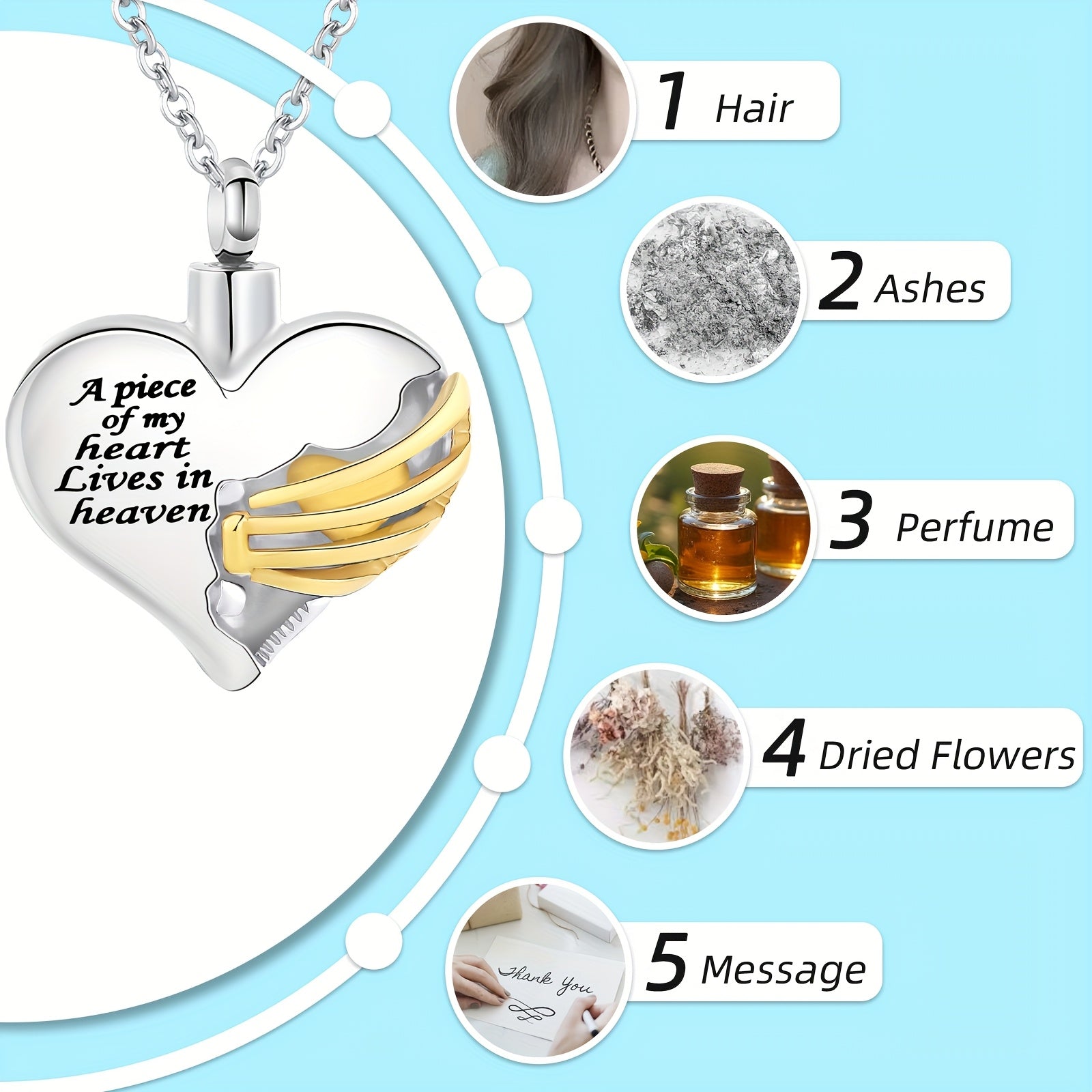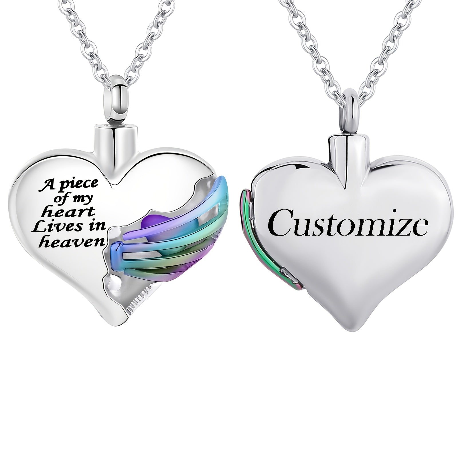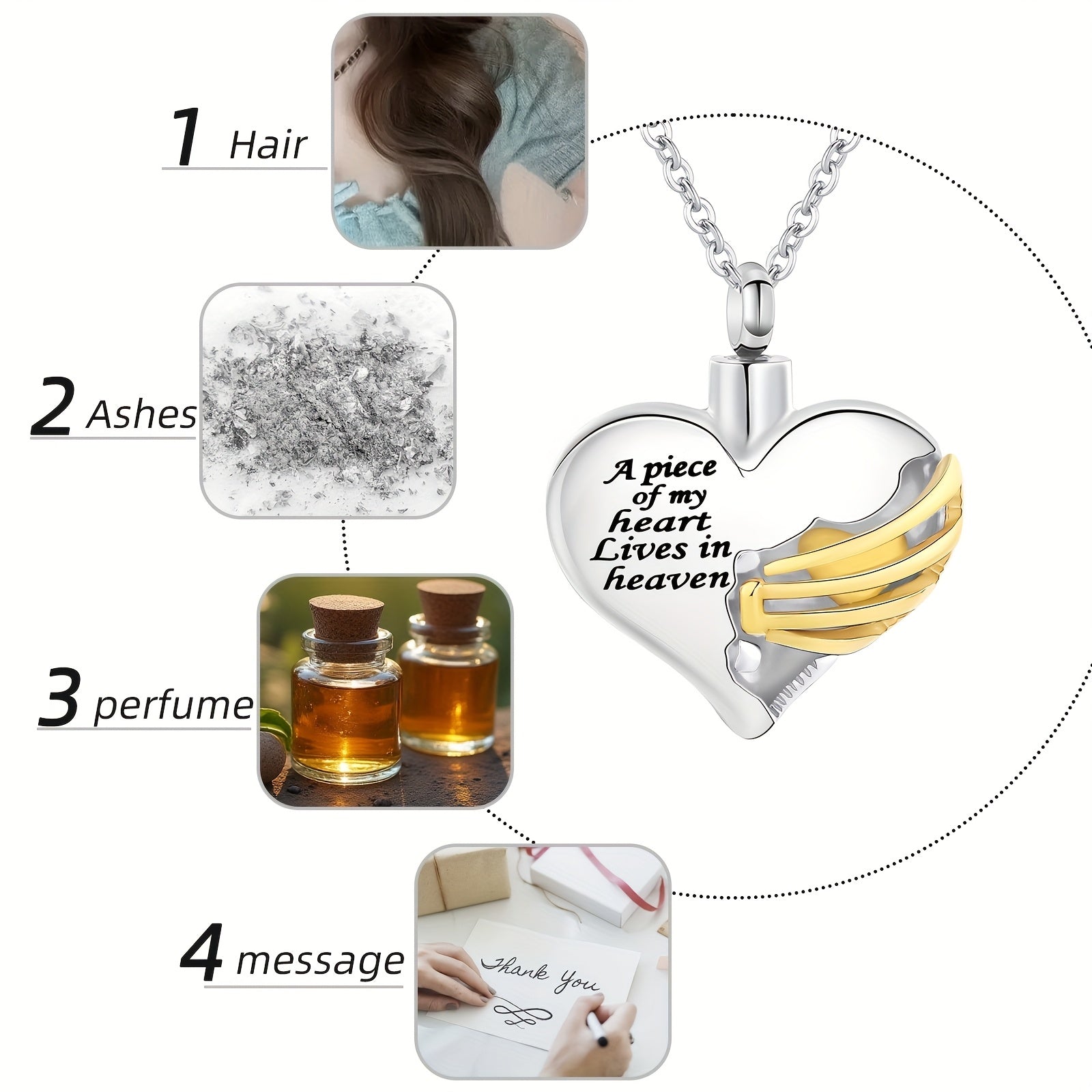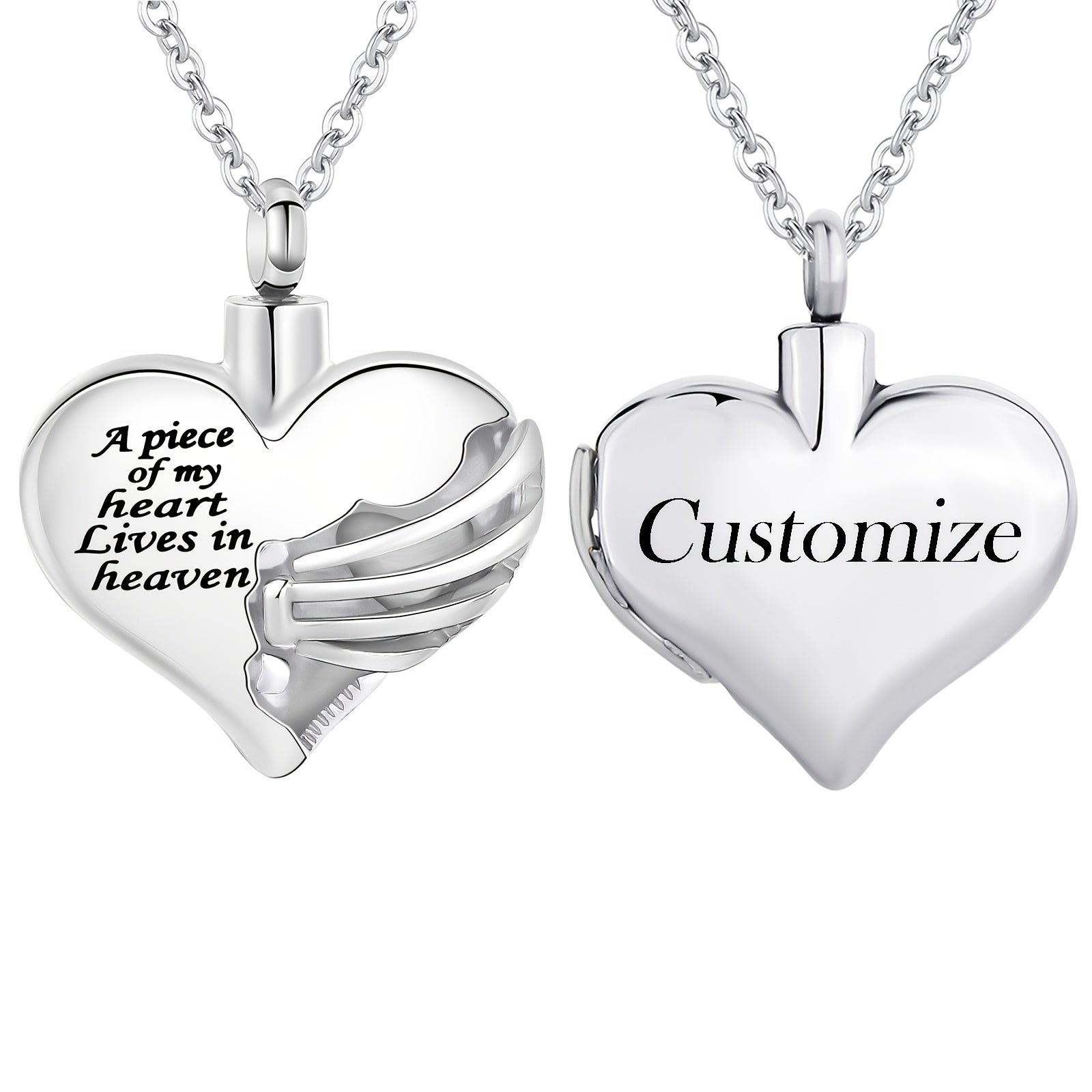Keep your loved one close with this stainless steel heart pendant urn necklace. The pendant holds a small amount of ashes or a lock of hair.