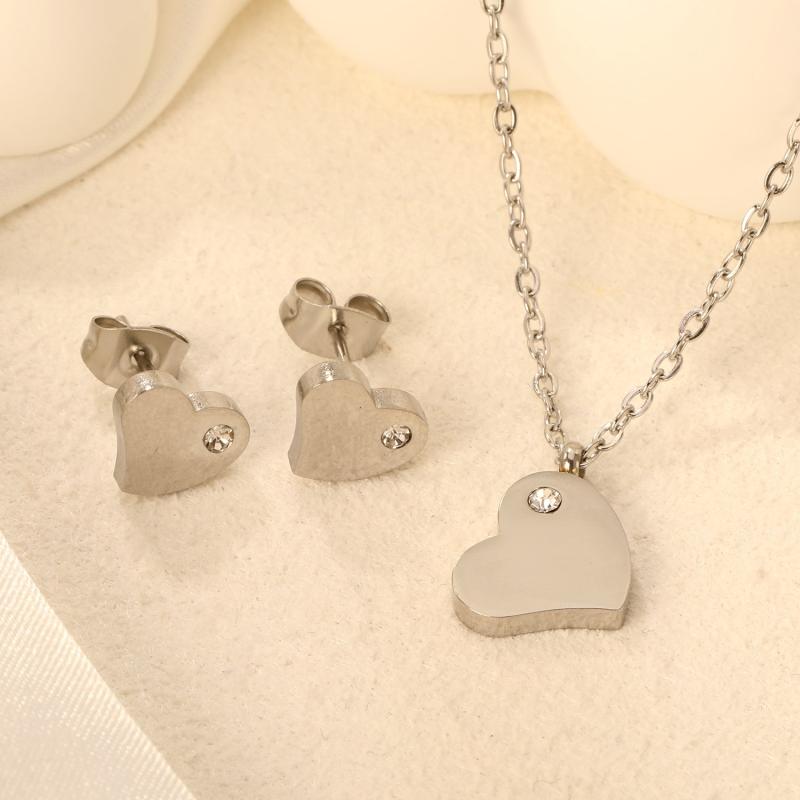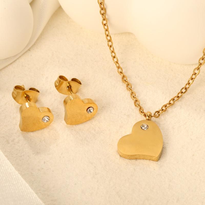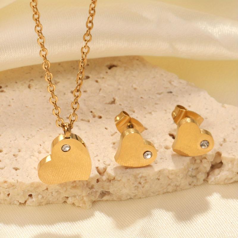 Elegant and stylish French style jewelry set crafted from 316 stainless steel with synthetic diamonds, plated with 18K gold. Hypoallergenic and perfect for daily wear.