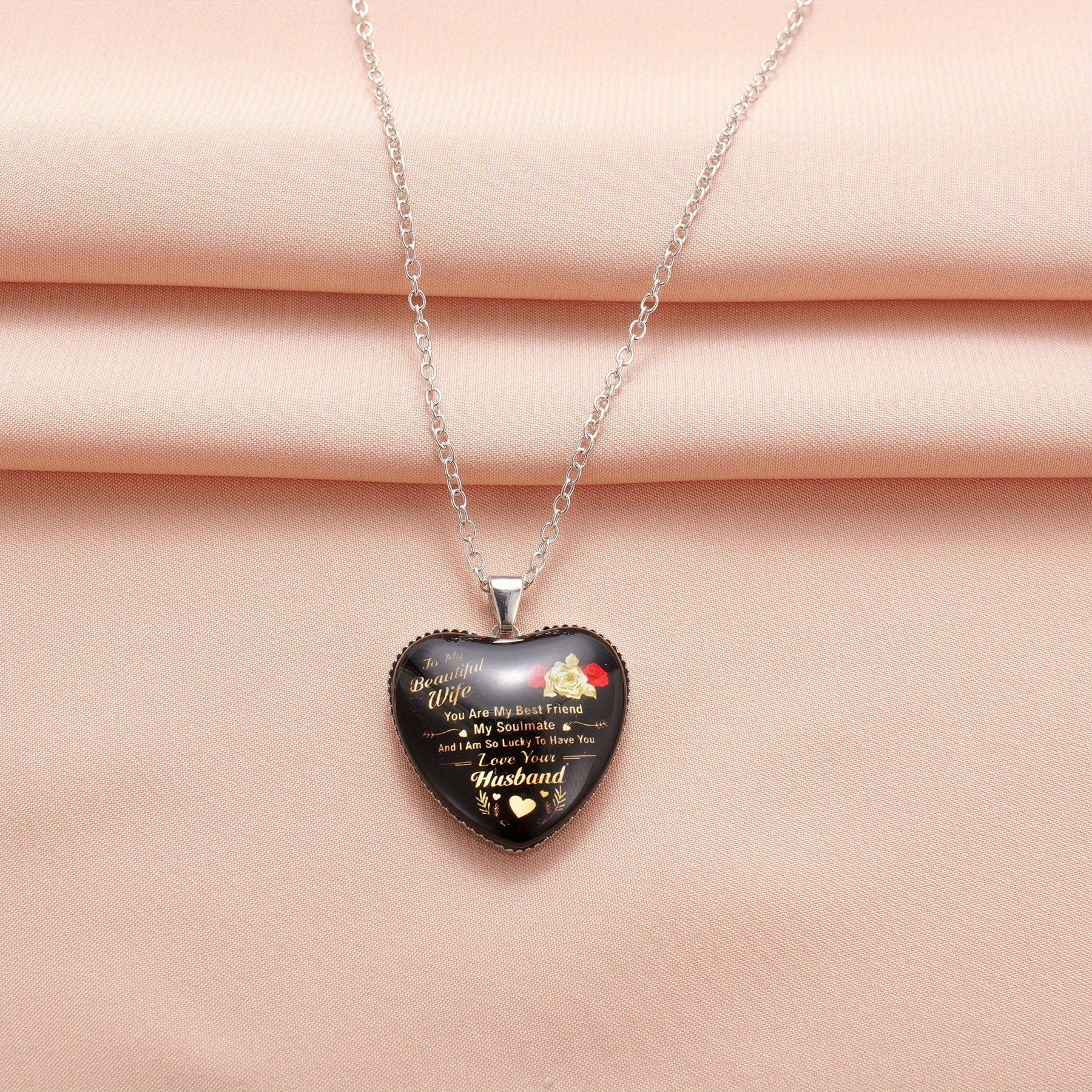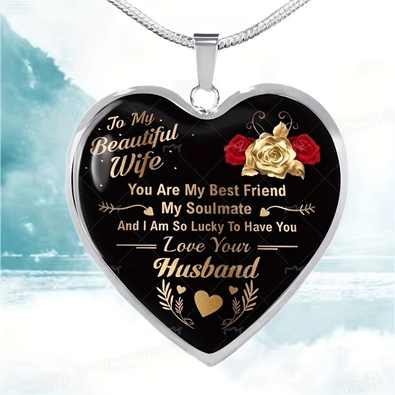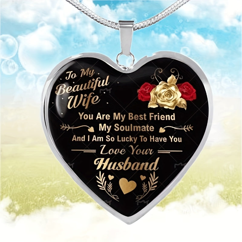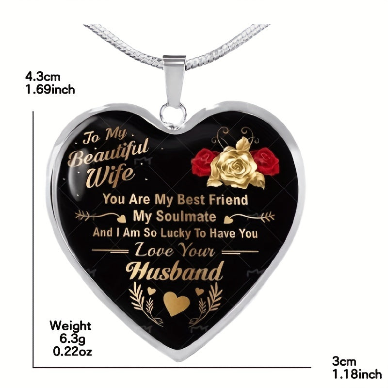 Express your love with this beautiful heart pendant necklace that is dedicated to your wife. It is a perfect anniversary gift for your husband to show your eternal love and appreciation.