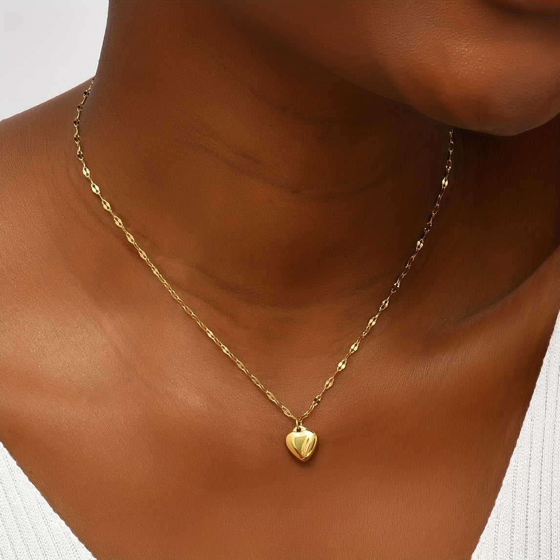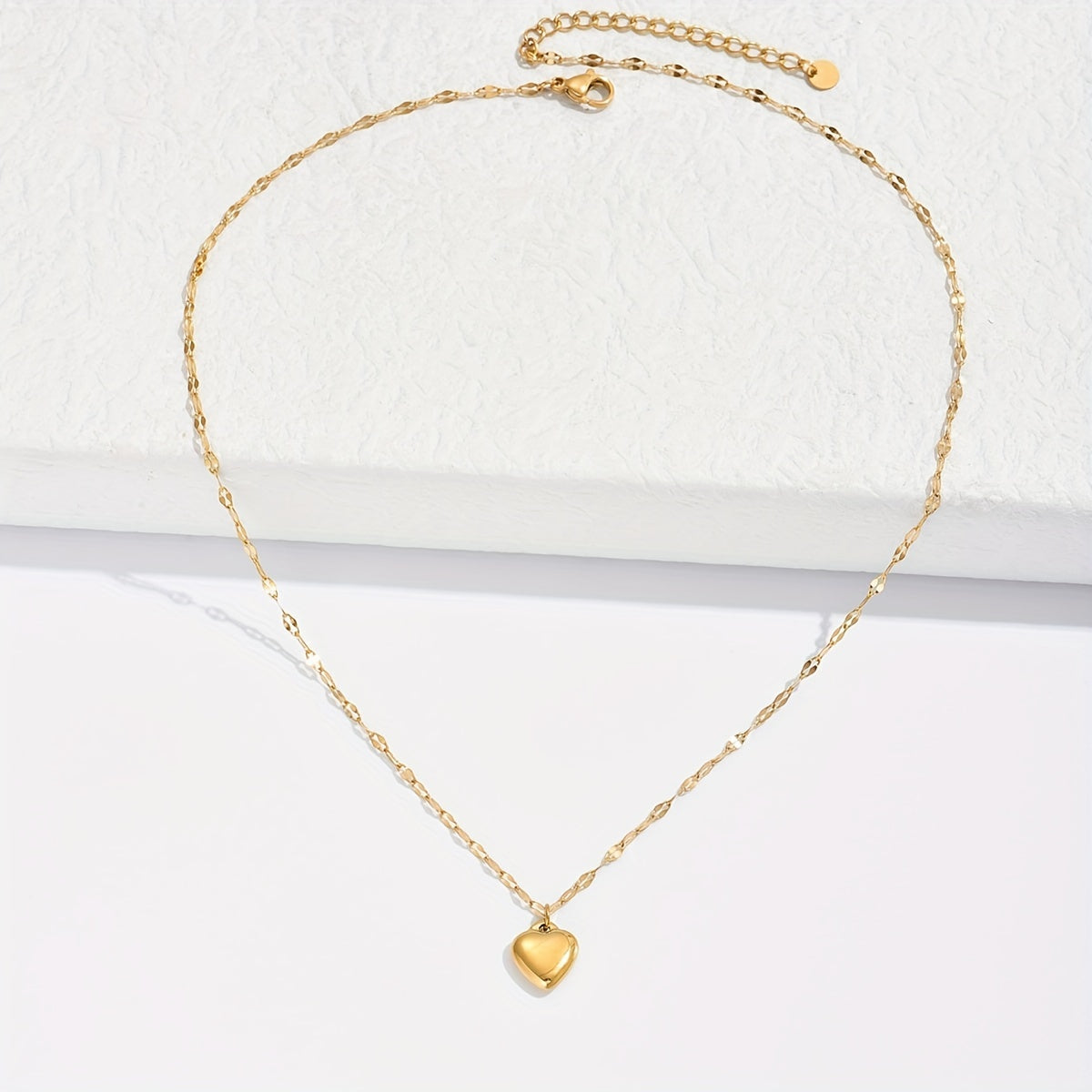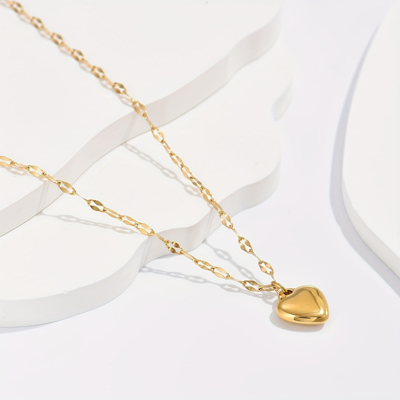This stainless steel heart-shaped pendant chain necklace is a beautiful accessory for women and girls. The necklace is adorned with 14K gold plating to add a touch of elegance.