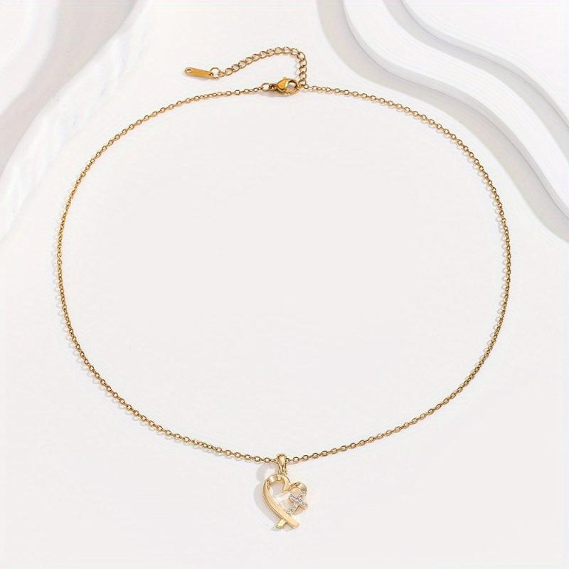 This minimalist heart pendant necklace is perfect for parties, banquets, and mother's boho style. It features a Cubic Zirconia heart pendant on an O-shaped stainless steel chain.