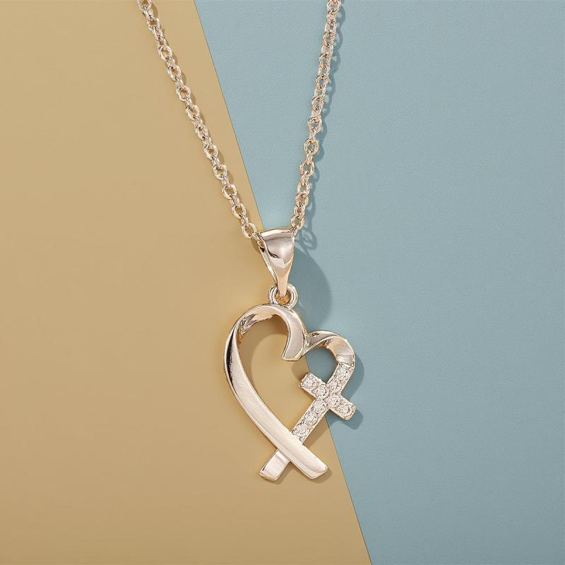 Heart Pendant Necklace with CZ on Stainless Steel Chain