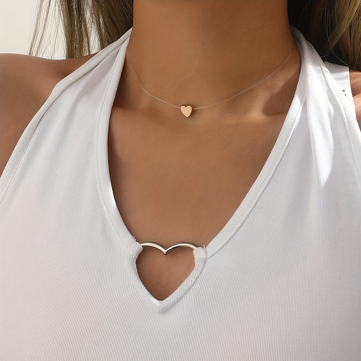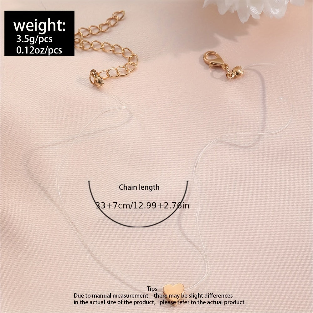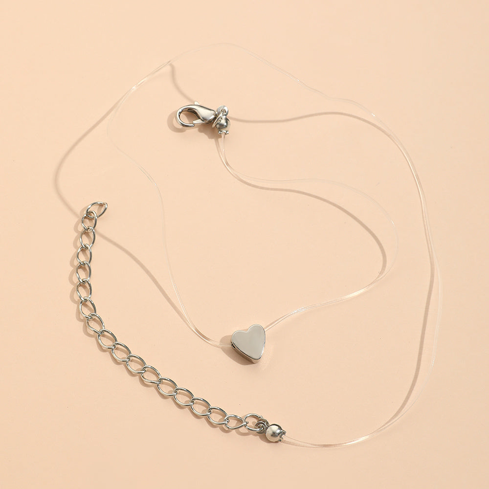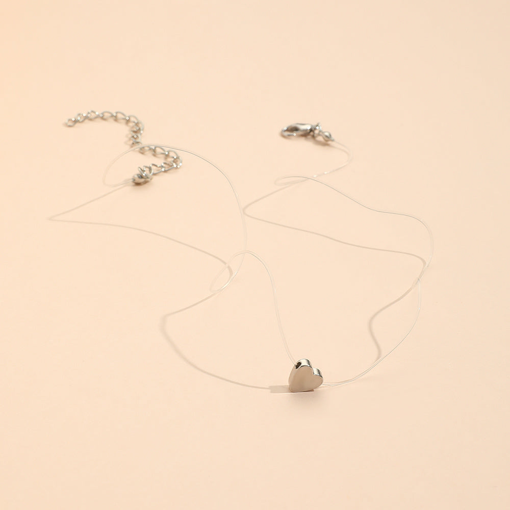 This lovely necklace features a peach heart pendant hanging from a delicate transparent fishing line. It adds a touch of charm and elegance to any outfit.