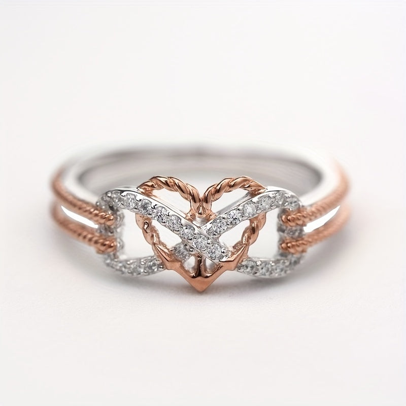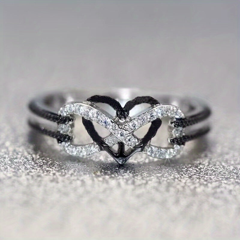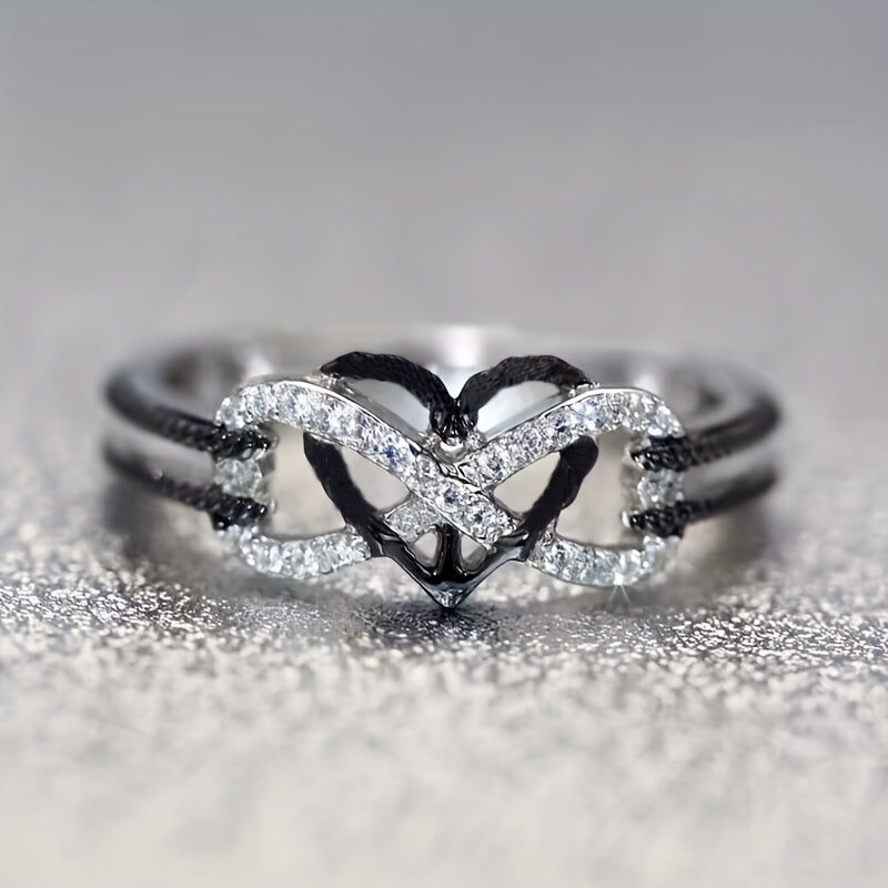 Add a touch of sparkle to your outfit with this elegant heart ring featuring rhinestones. Perfect for everyday wear or special occasions.