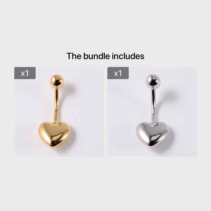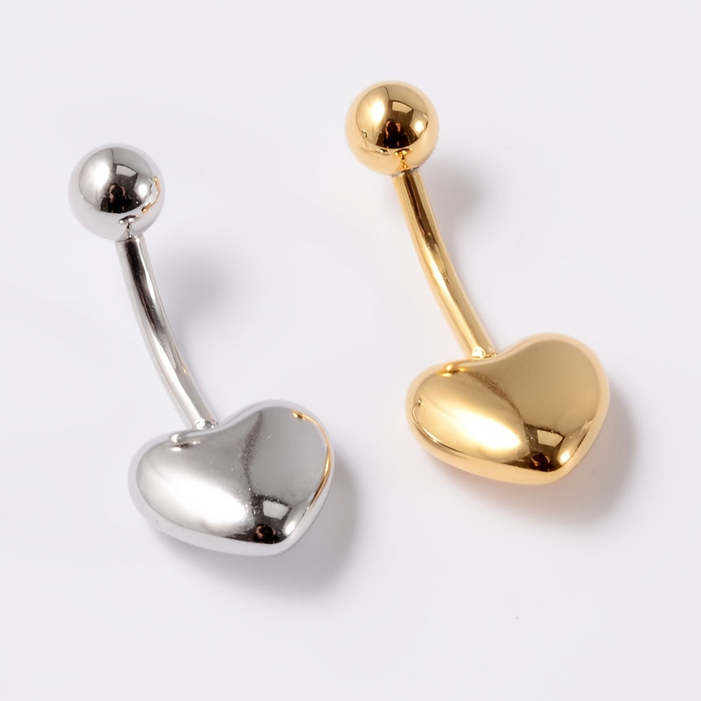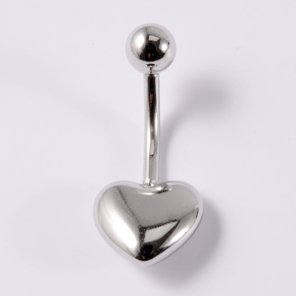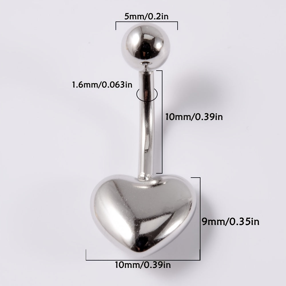This heart-shaped belly button ring is made from pure stainless steel, ensuring it is hypoallergenic and safe for body piercing. Includes 1 piece.