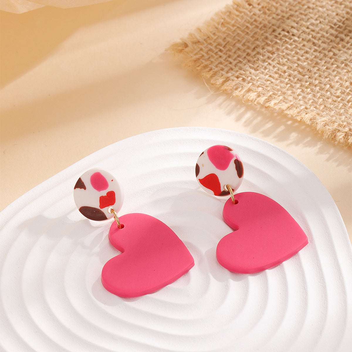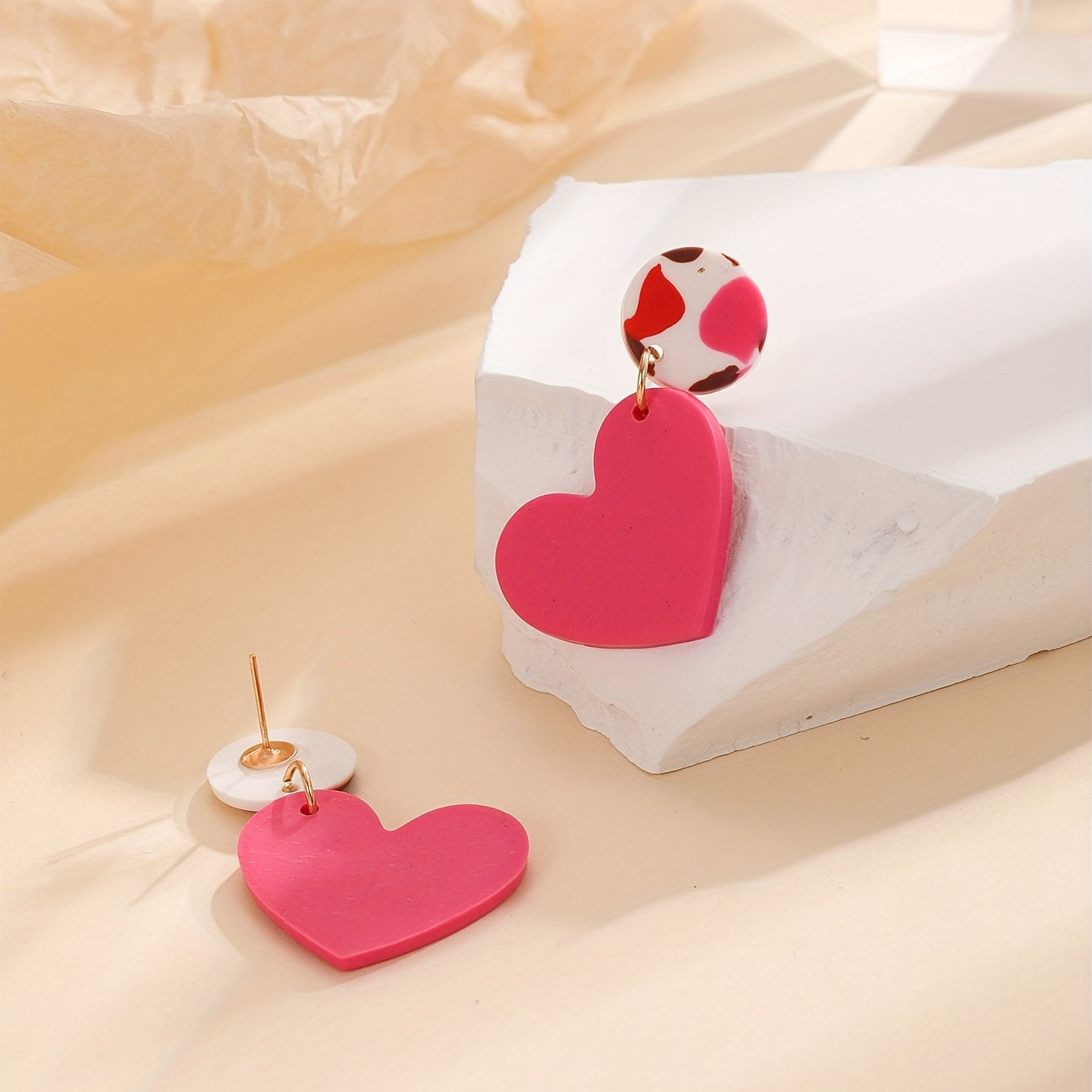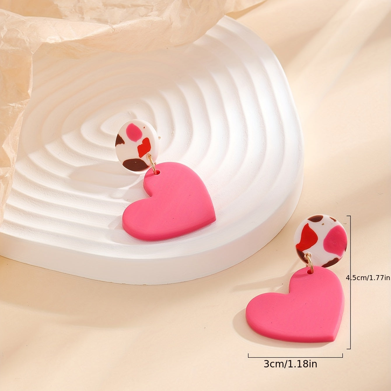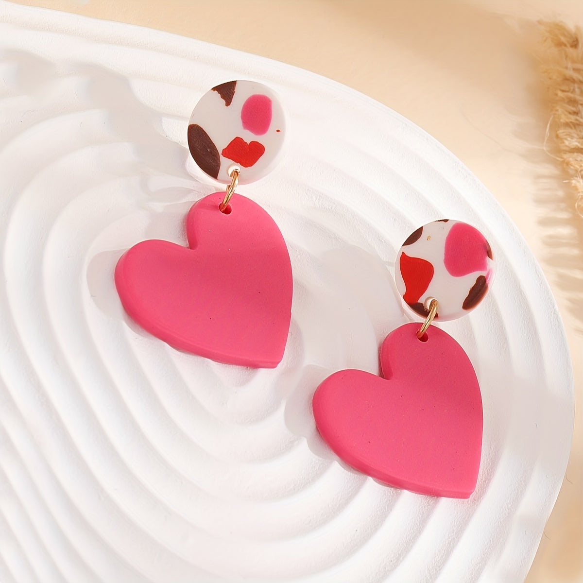 Add a pop of color to your outfit with these hot pink heart shape dangle earrings. Perfect for daily wear or casual occasions.