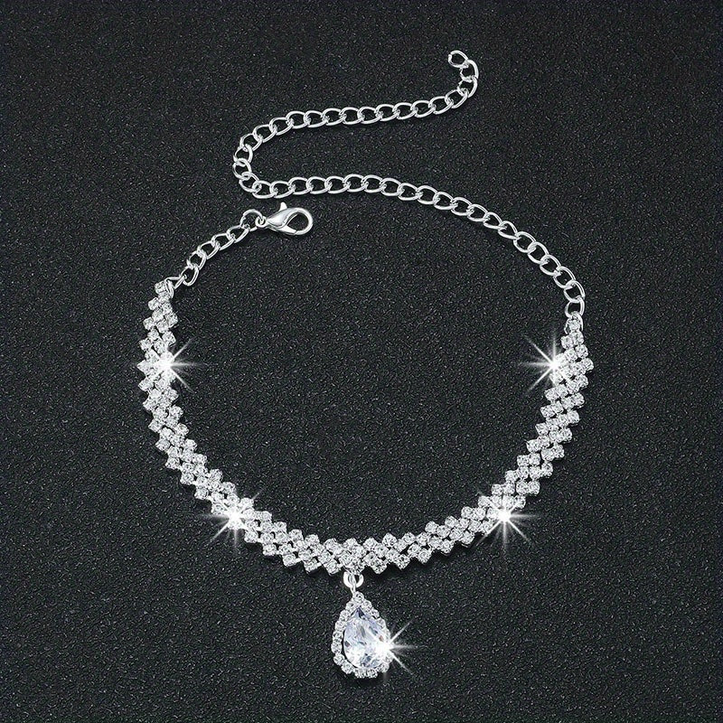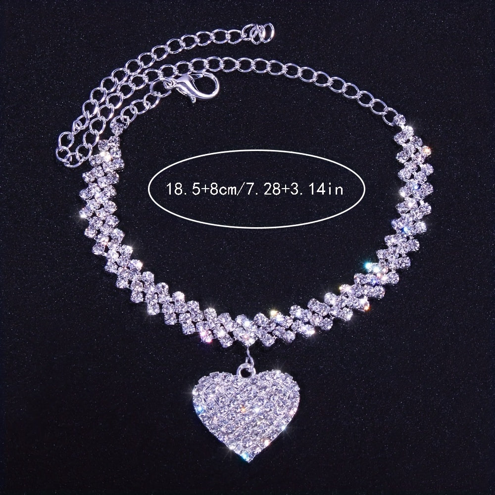 This elegant anklet features a heart-shaped pendant with rhinestones, perfect for adding a touch of sparkle to your look. It makes a great gift for any occasion.