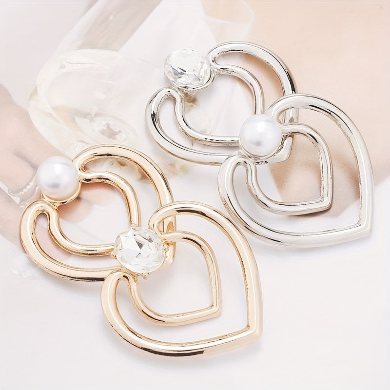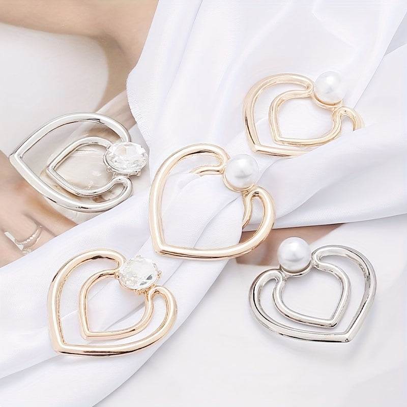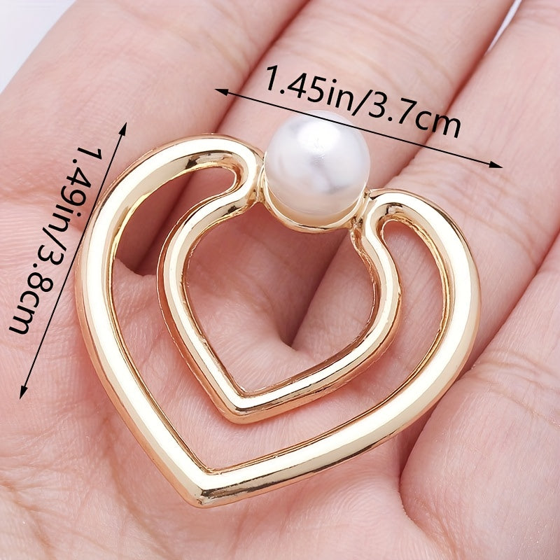 Add a touch of elegance to your scarf with this heart-shaped scarf buckle. The hollow-out design and faux pearls give a stylish look.