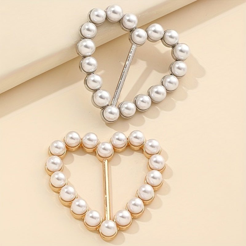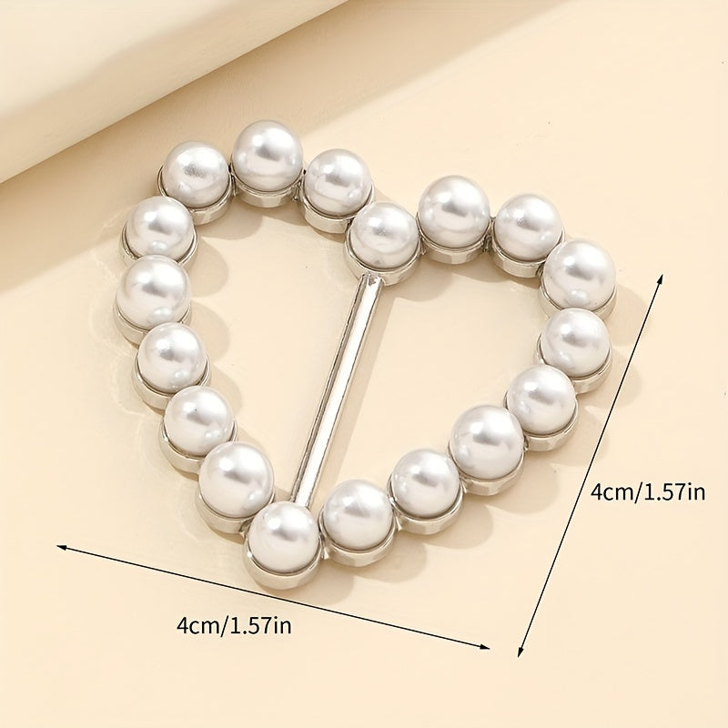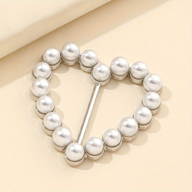 Add a touch of elegance to your scarf with this stunning heart-shaped scarf buckle featuring inlaid faux pearls. Perfect accessory for your clothing ensemble.