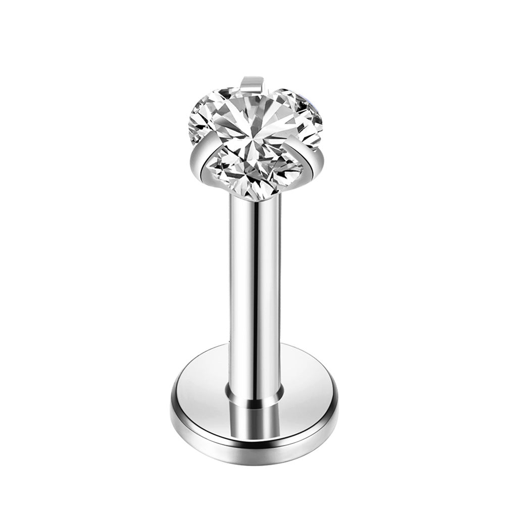 Add a touch of sweetness with this unisex stainless steel lip and nose ring featuring a heart-shaped zircon accent.