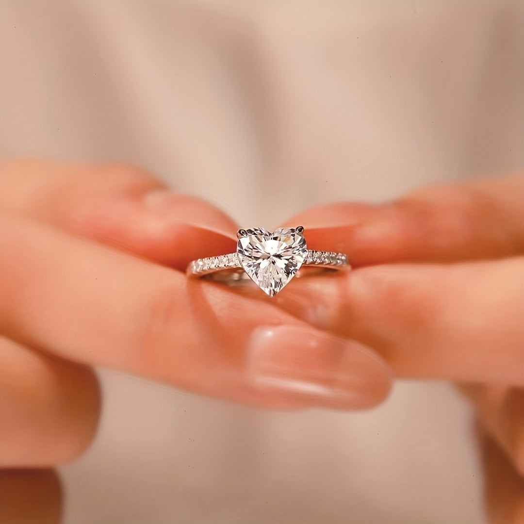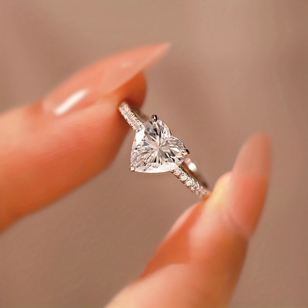 Stunning heart-shaped zircon promise ring with micro zircon inlay. Perfect for engagements, weddings, and evening parties.