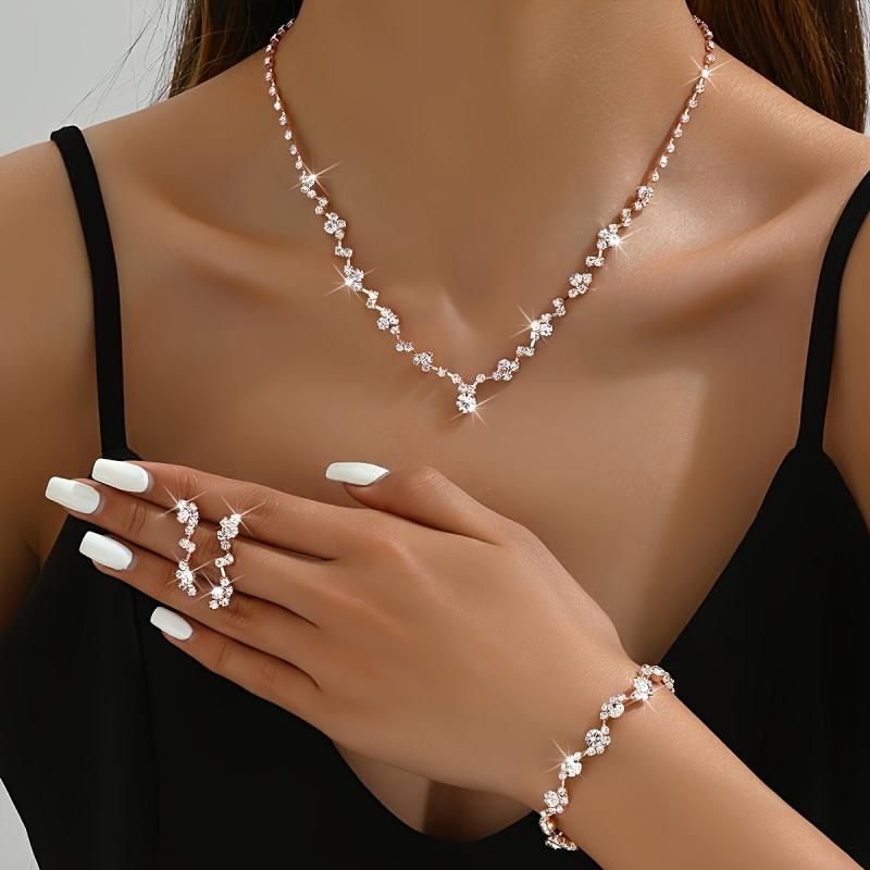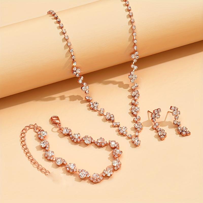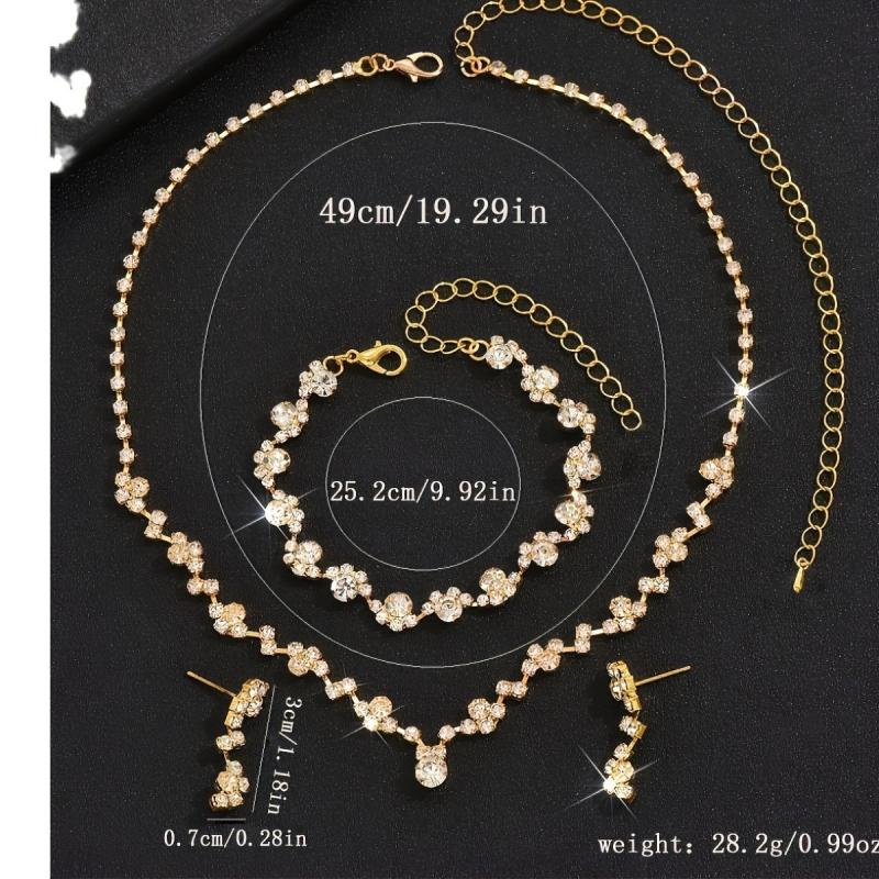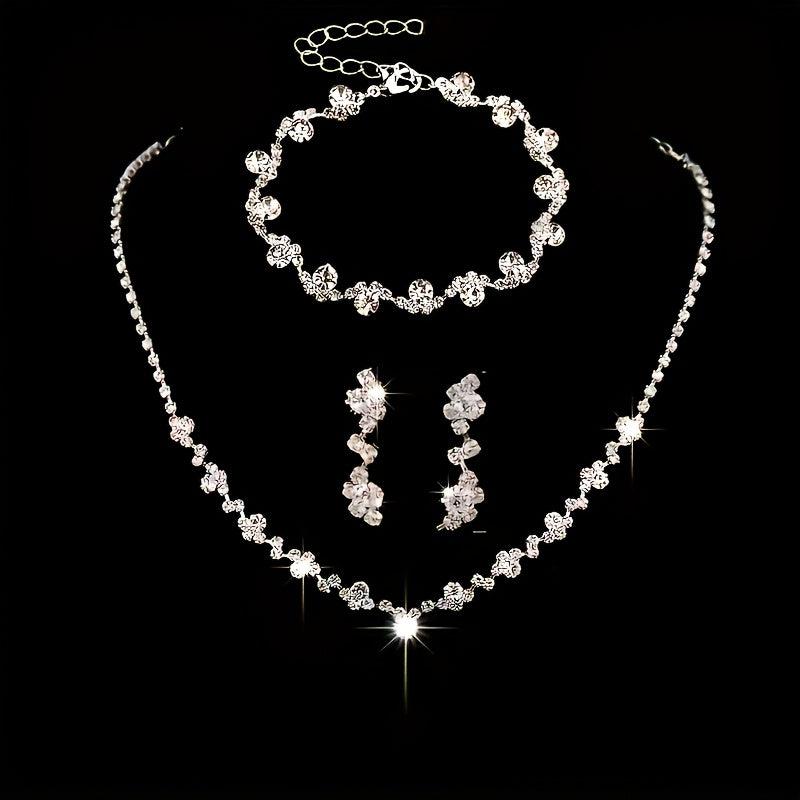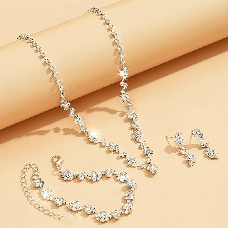 Complete your bridal look with this 3-piece jewelry set featuring heart-shaped synthetic stones. Made of zinc alloy with silver plating, this set is perfect for daily wear and wedding occasions.