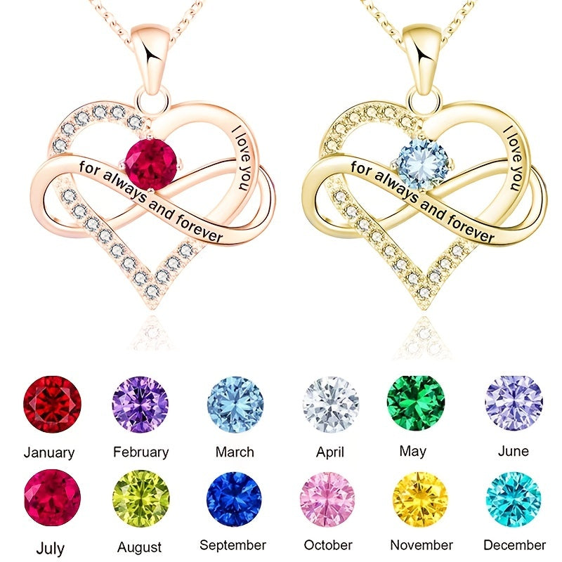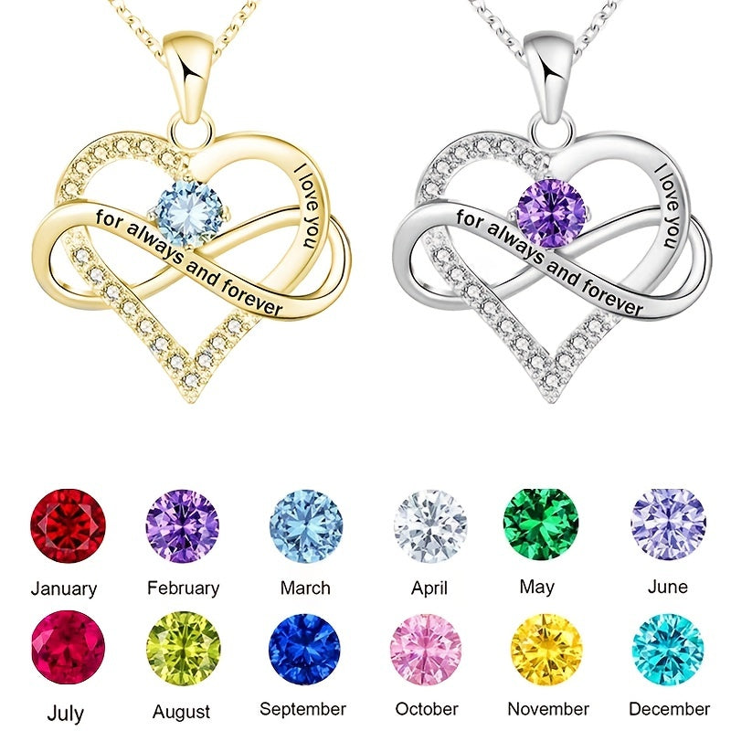 Express your love with this heart-shaped pendant necklace featuring twelve birthstones. Made from 18K 925 silver in rose, silver, or gold color options.