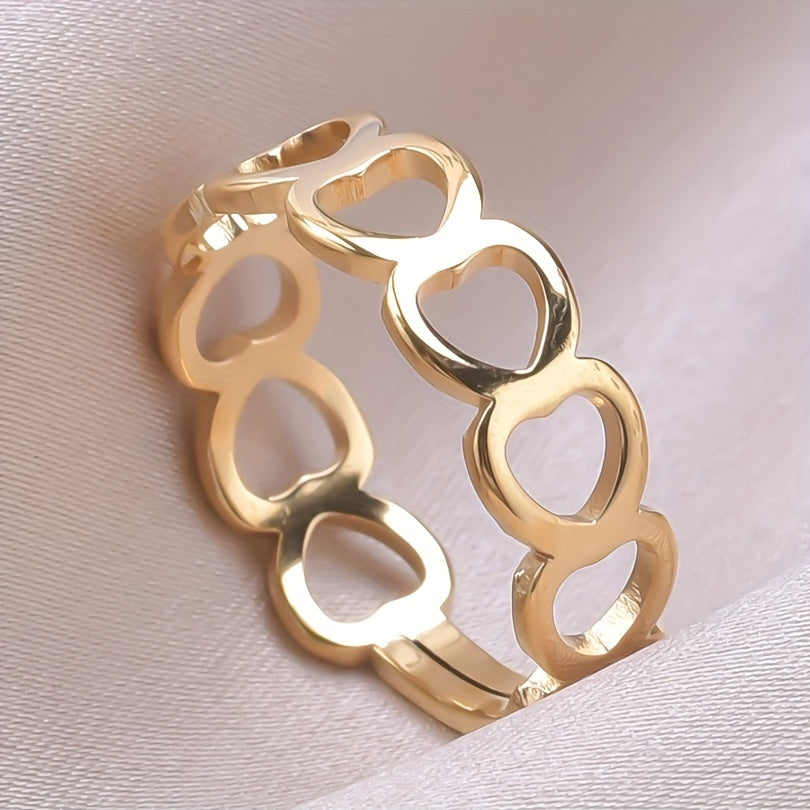 Elegant and chic Heart To Heart Ring made of 18k plated stainless steel, adjustable for a perfect fit. Ideal accessory to match daily outfits or add a touch of glamour to your party looks. Makes a sweet birthday or Christmas gift!
