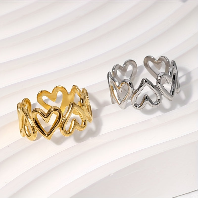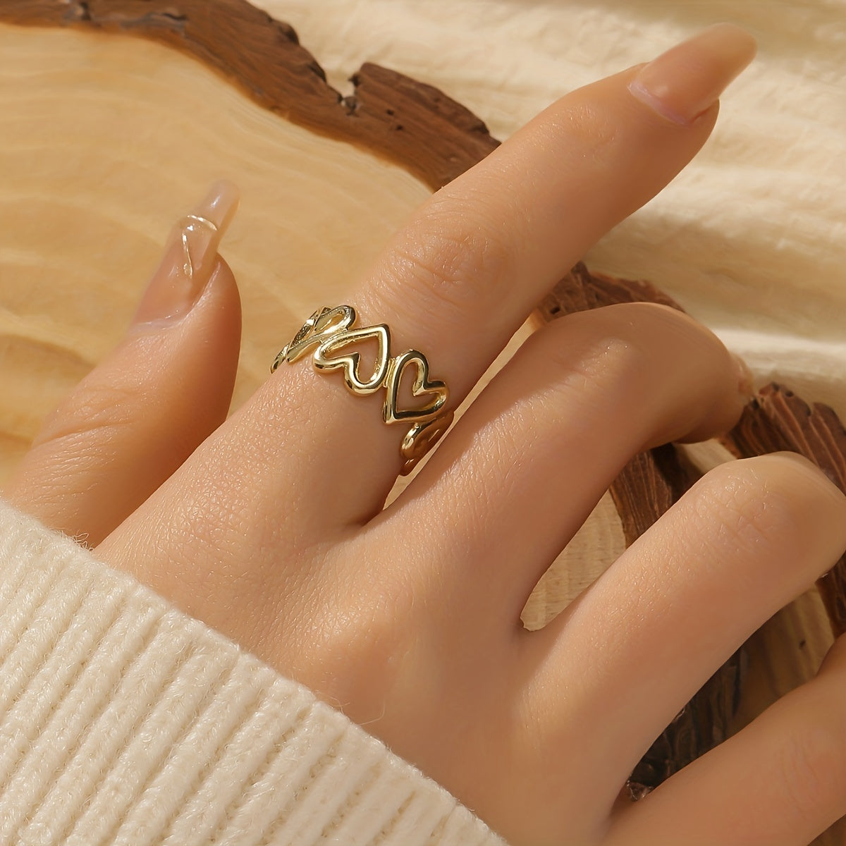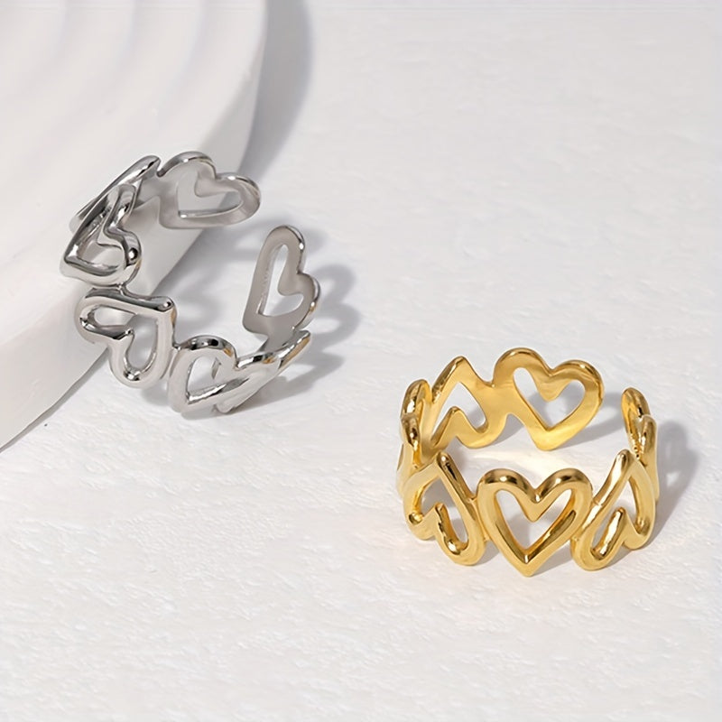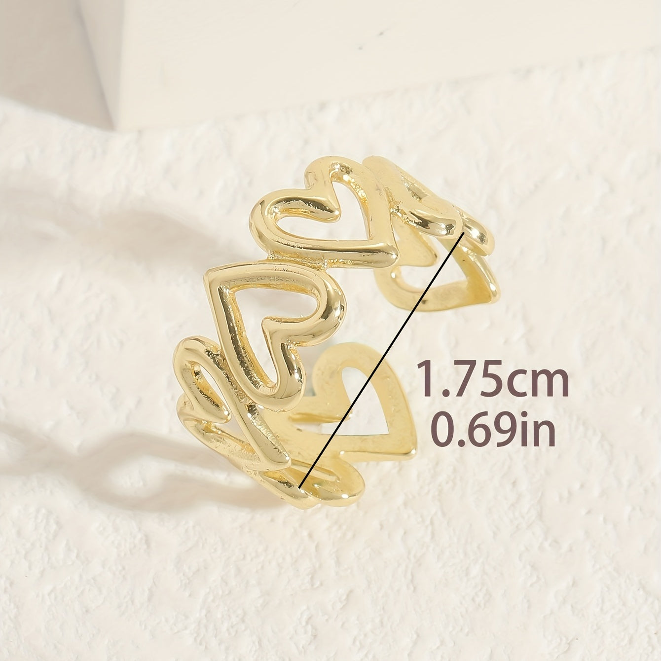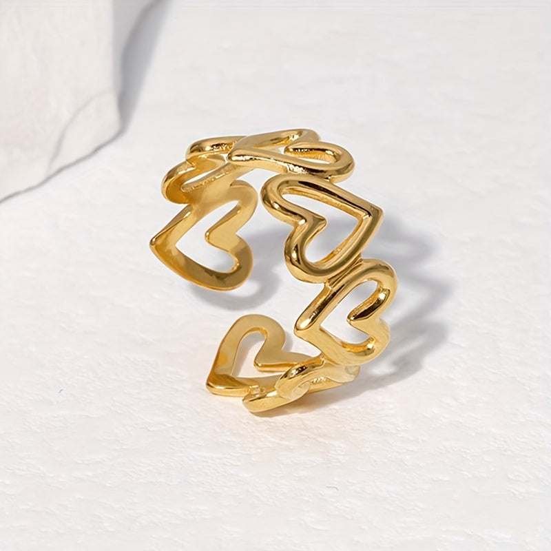 This elegant Heart To Heart Ring features a hollow design in 18k gold plating. It's perfect to match with your daily outfits and makes a great gift for her on anniversaries or birthdays.
