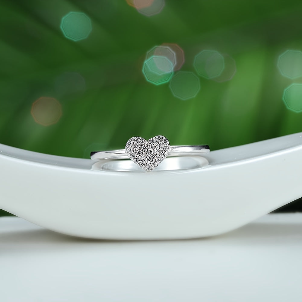 This stunning heart zircon ring is crafted from sterling silver and plated with silver. Perfect for women and girls, it adds a touch of elegance to any outfit.