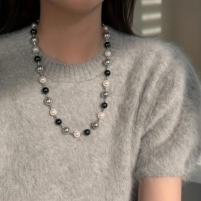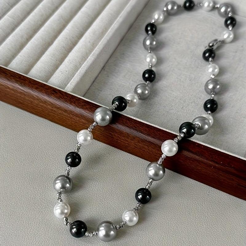 Elevate your style with this exquisite gray mixed shell pearl necklace, perfect for autumn and winter. Ideal for pairing with sweaters.