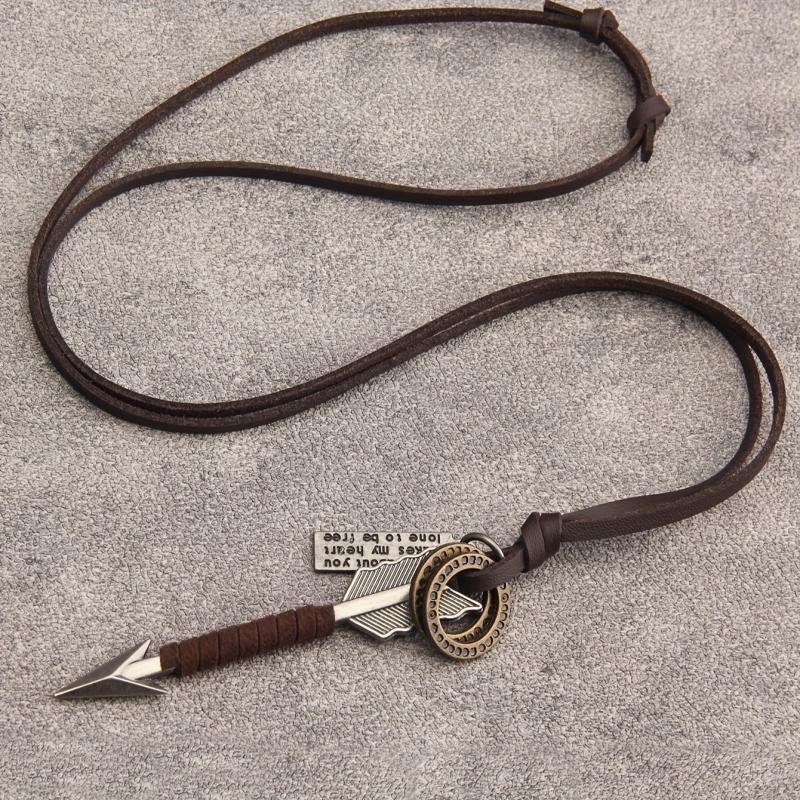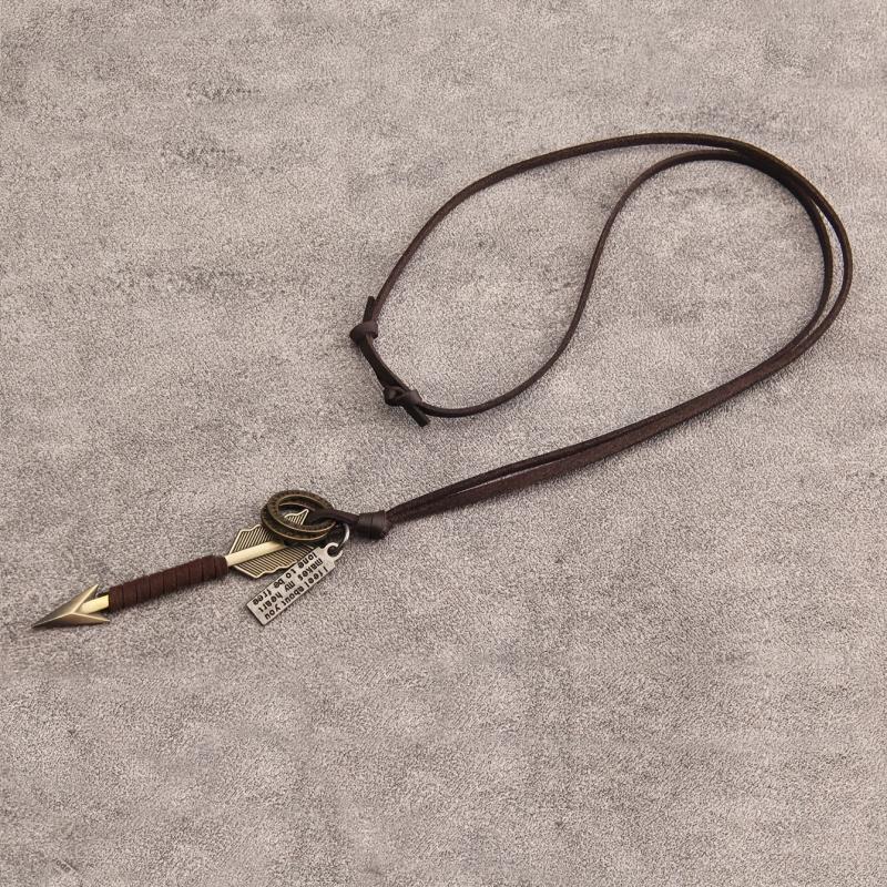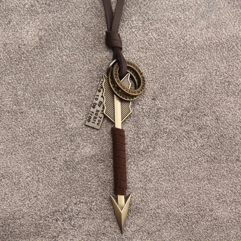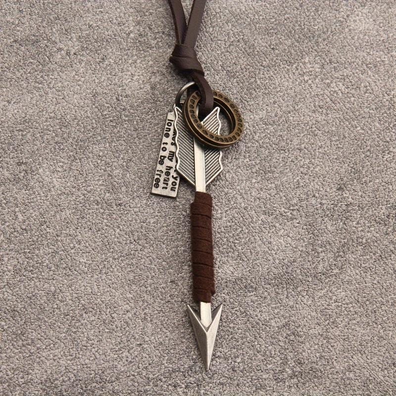 This Hip Hop Arrow Keychain Pendant Necklace is made of high-quality zinc alloy, featuring a long chain and leather cord. It's a unisex accessory that adds a stylish edge to any outfit.
