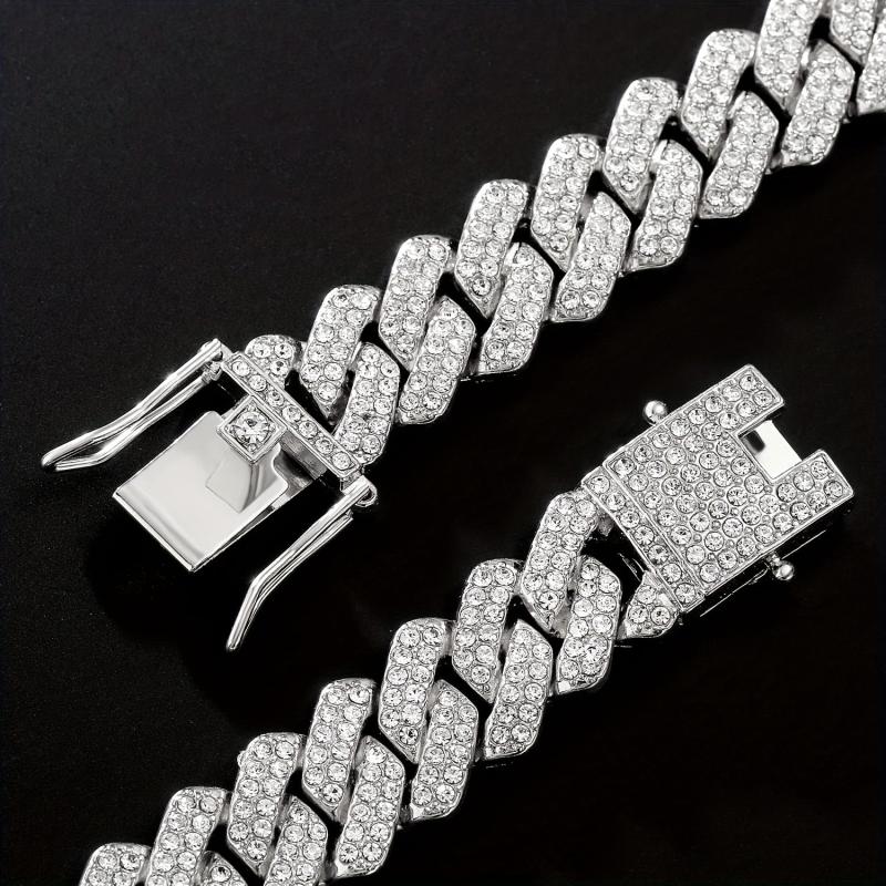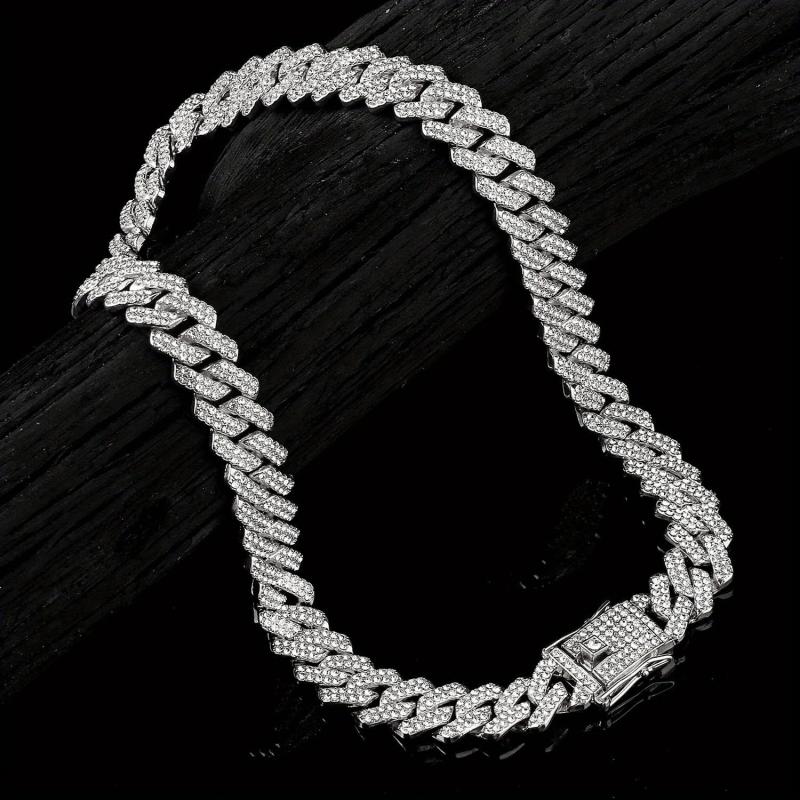 This versatile vintage necklace is perfect for both men and women. It features a hip hop Cuban design with sparkling rhinestones, making it a stylish accessory for any outfit.