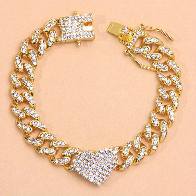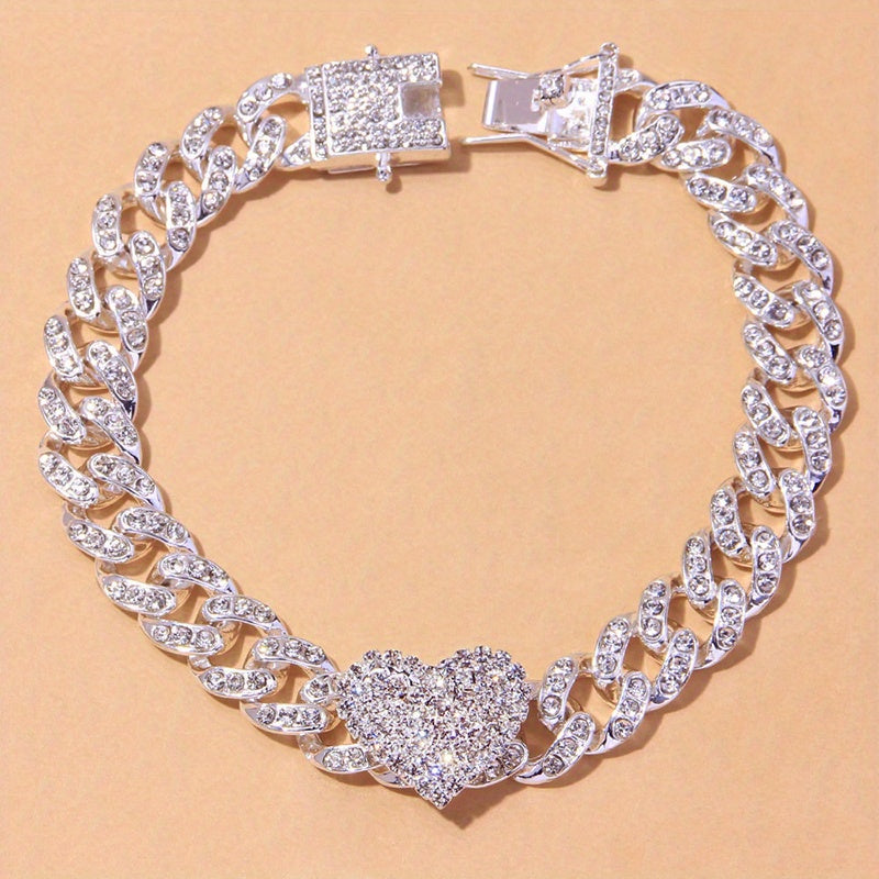 Add a touch of glam to your outfit with this stylish anklet featuring a love heart hollow out design and rhinestone details.
