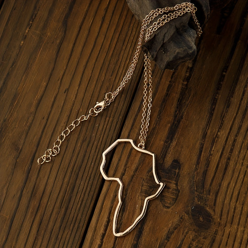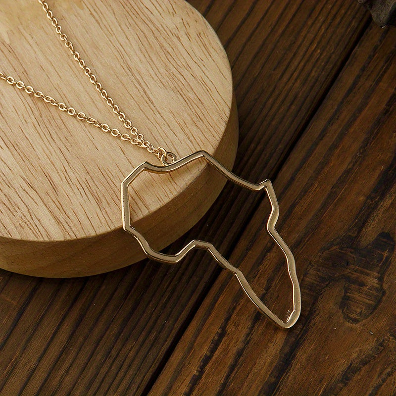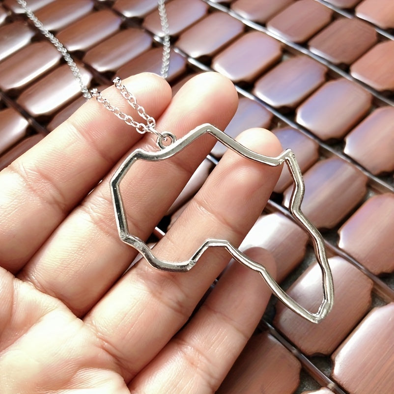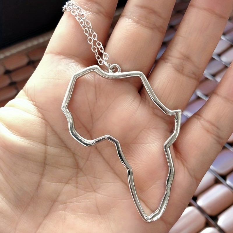 Beautifully crafted hollow Africa map pendant necklace in silver plating, perfect accessory for women.