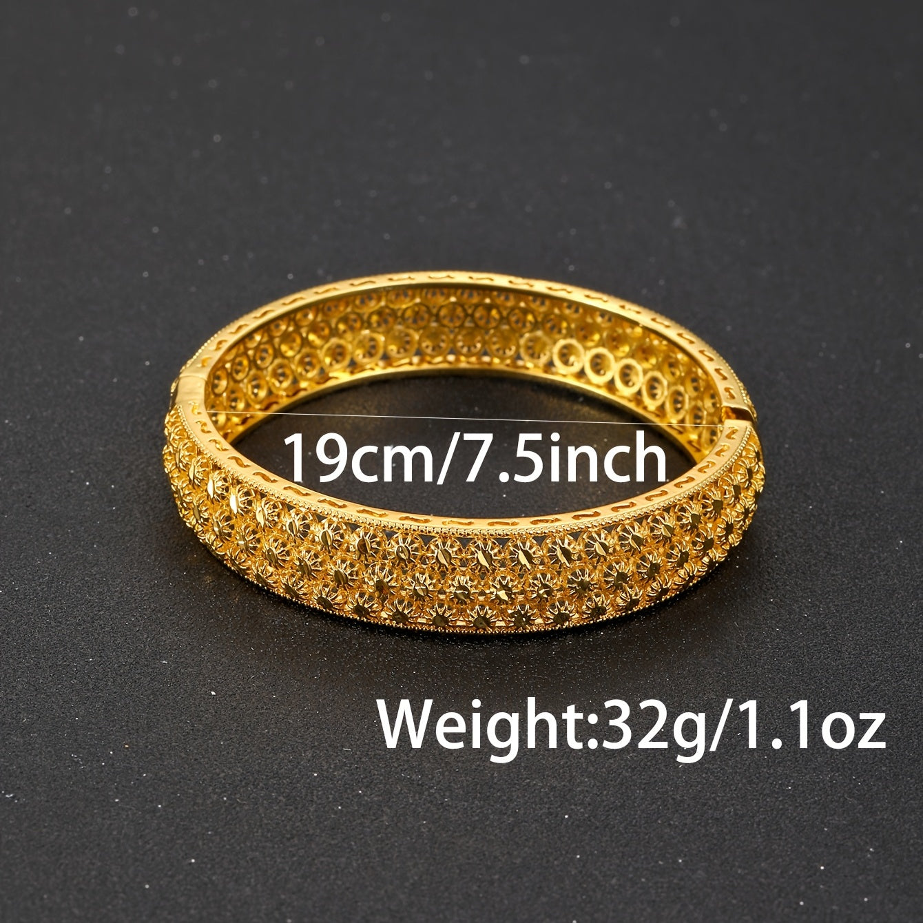 This delicate hollow flower bangle bracelet is a perfect accessory for weddings and banquets. It adds a touch of sweetness to your attire.
