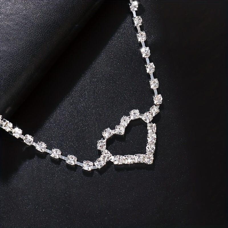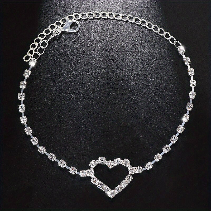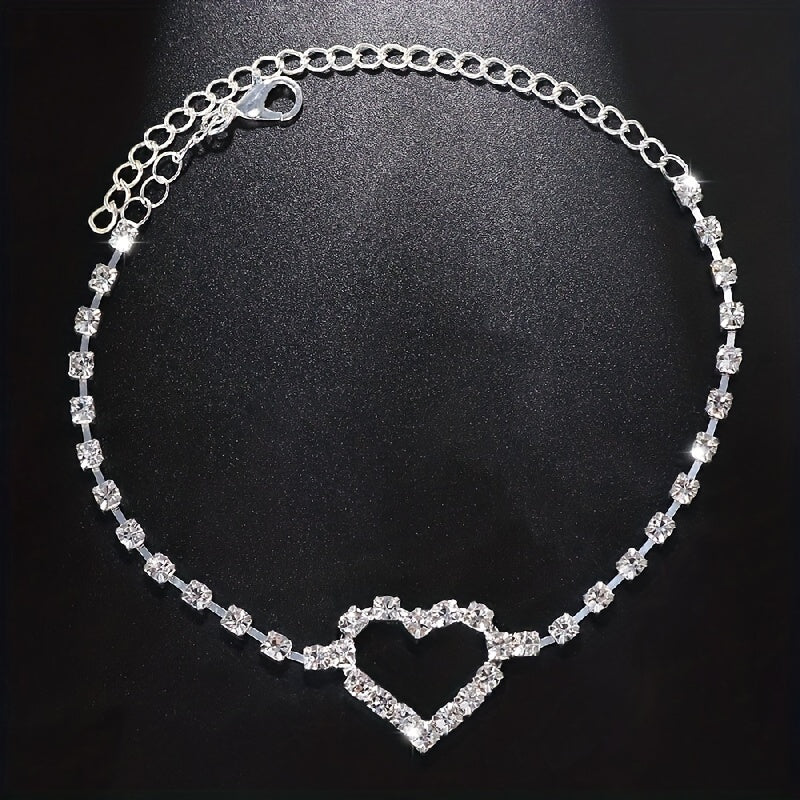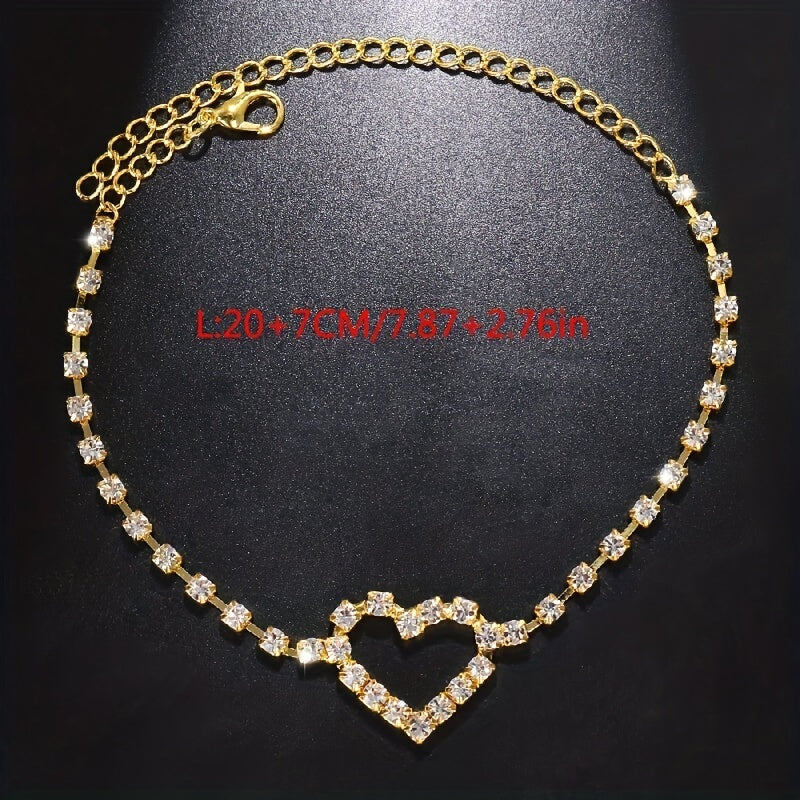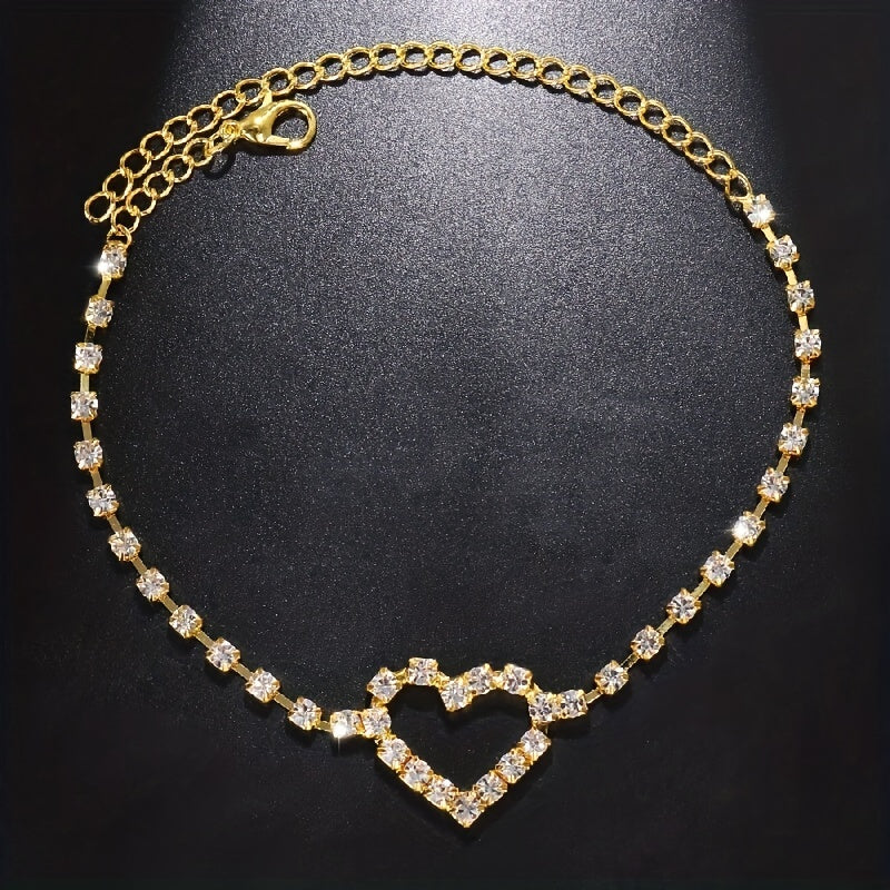 This glittering anklet is a perfect foot decoration featuring a hollow love heart design with rhinestone inlay for added sparkle.