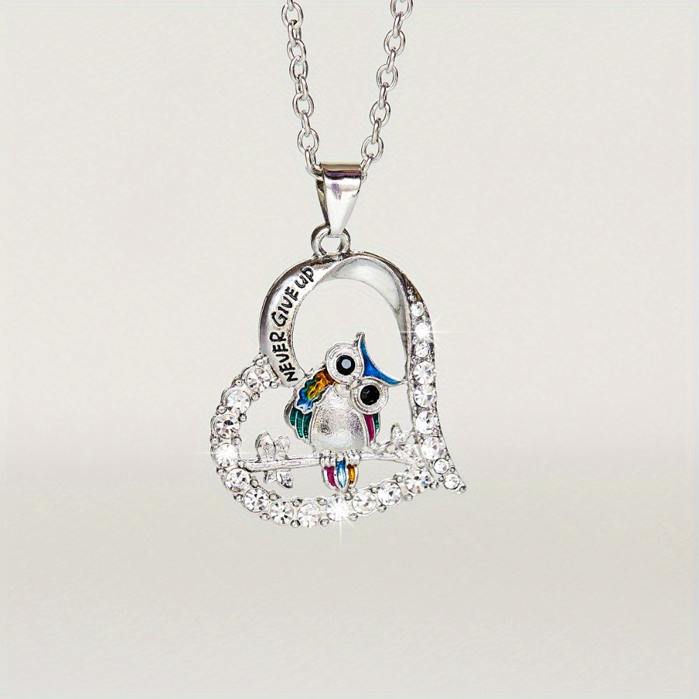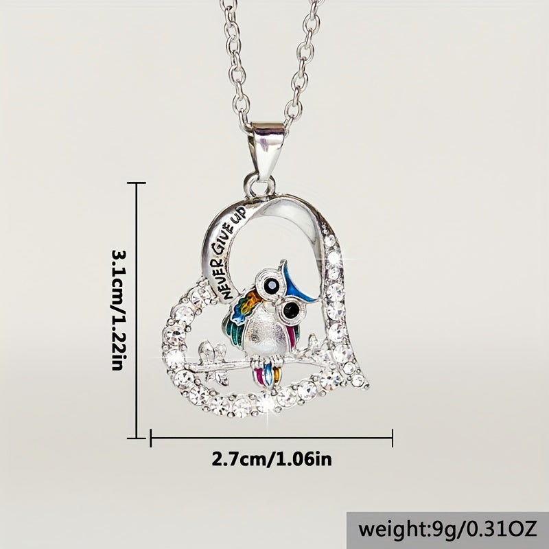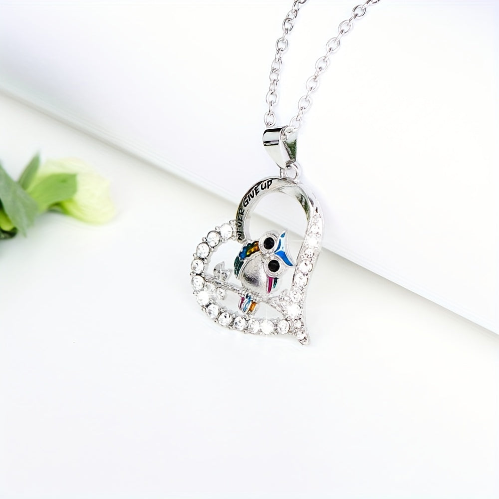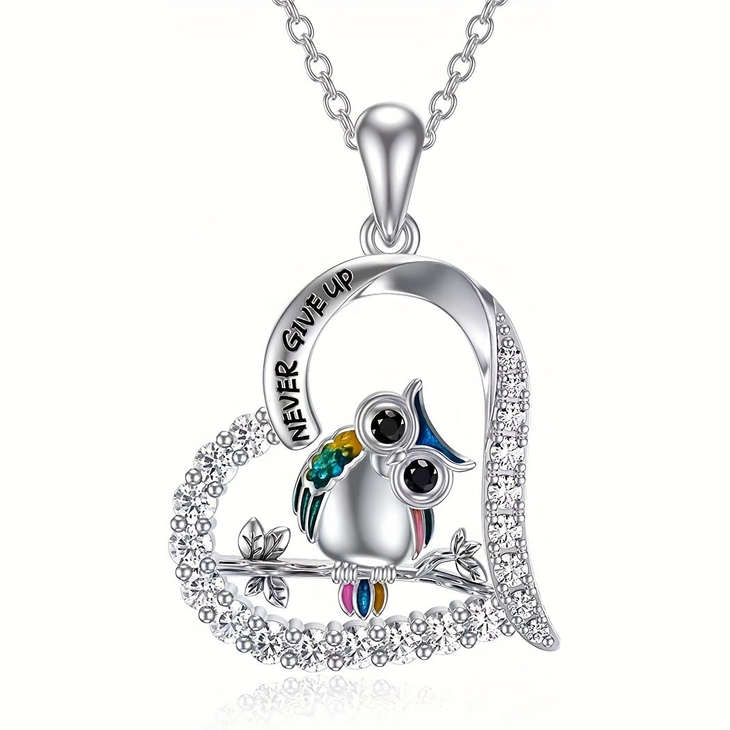 Beautiful pendant necklace featuring a hollow heart-shaped owl with inlaid zircons. This creative jewelry piece is perfect for any occasion.