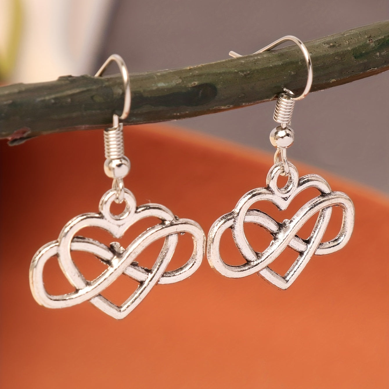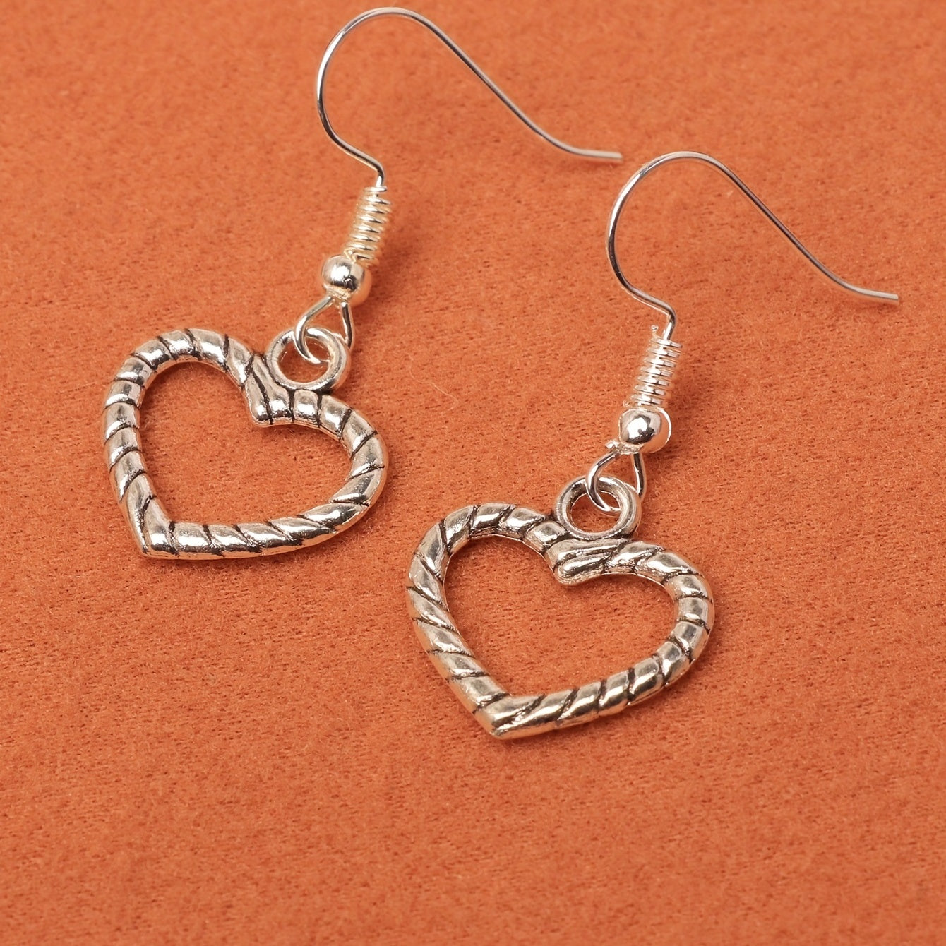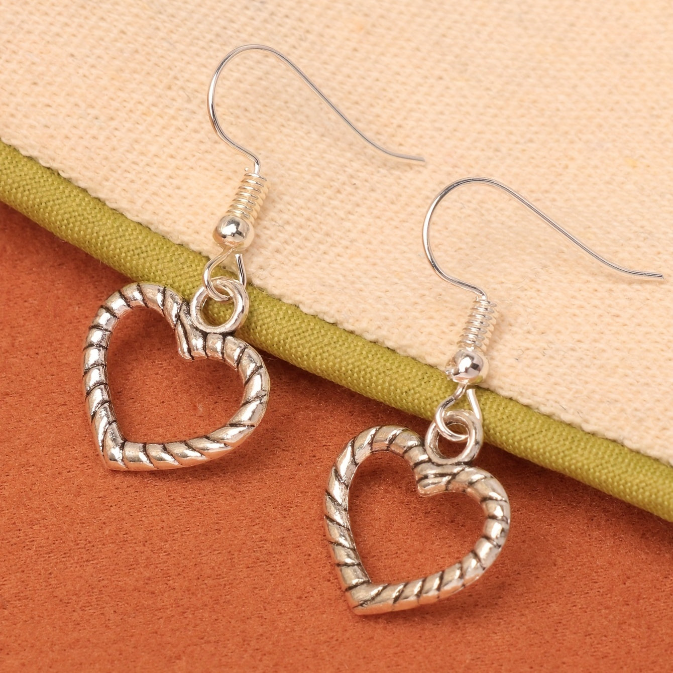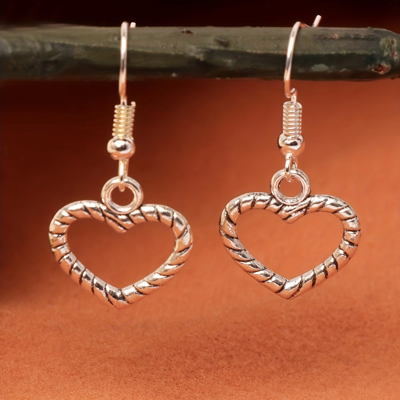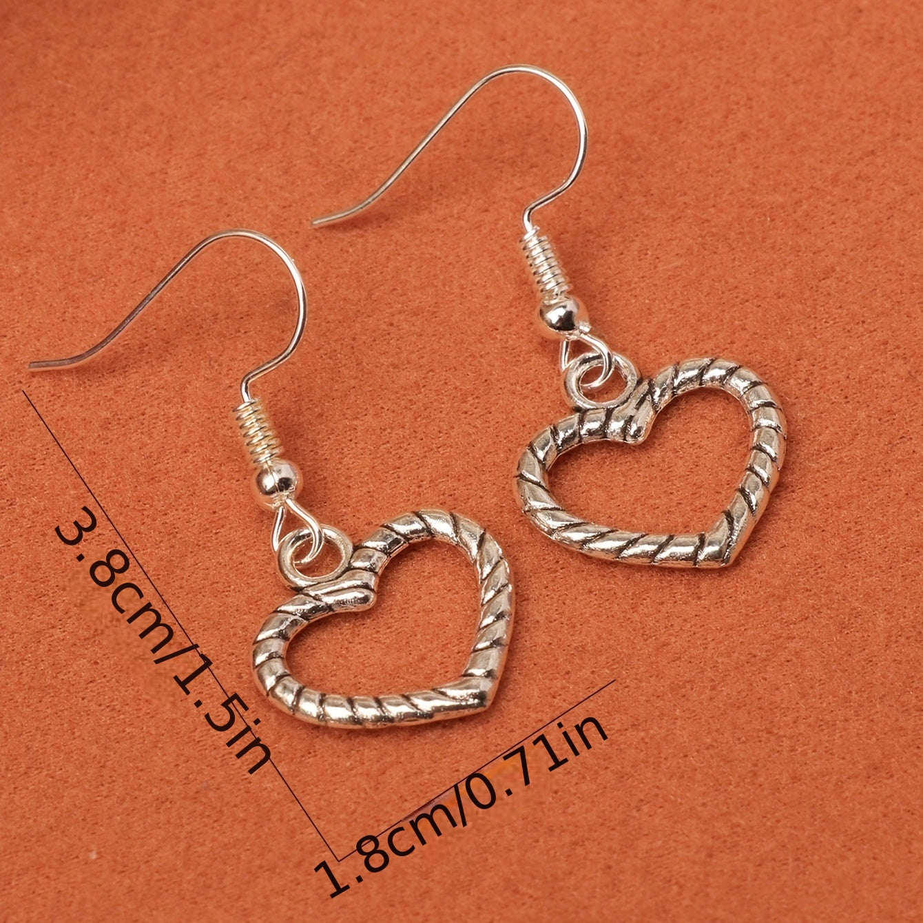 These silvery dangle earrings feature a retro style design with a hollow heart shape, making them a delicate and stylish gift for someone special.