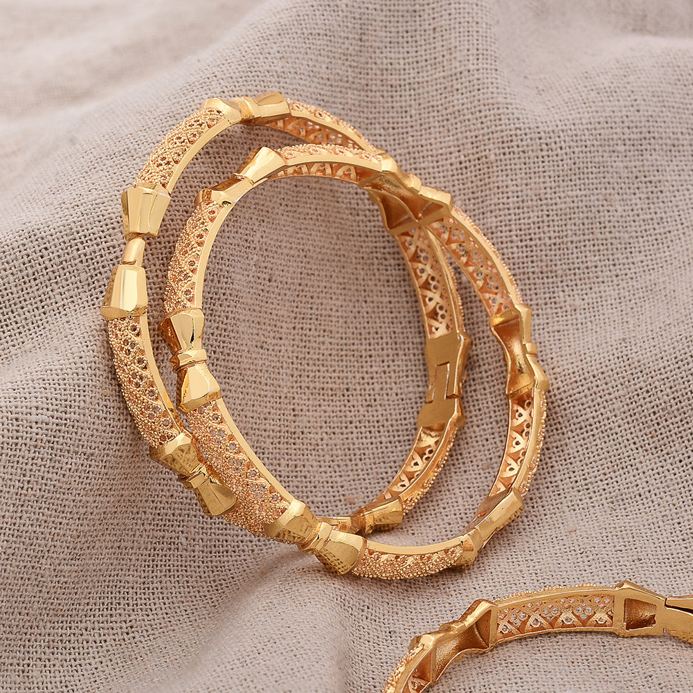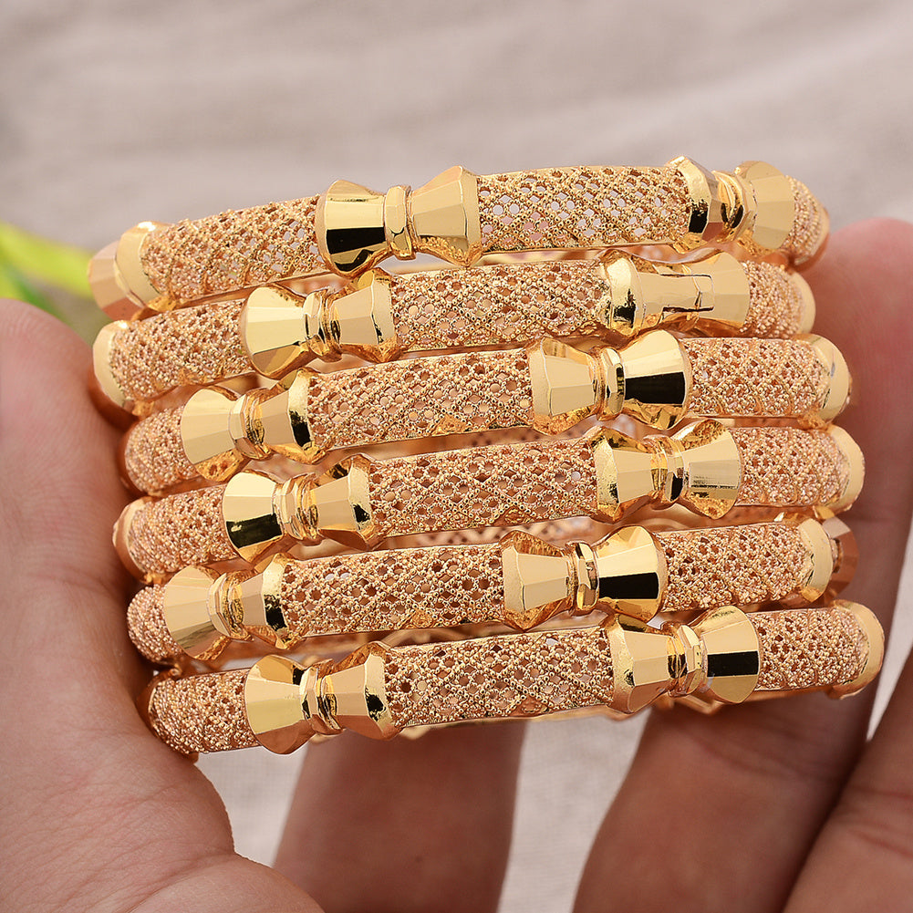 Enhance your style with this stunning hollow out bangle bracelet made of 18K plated copper. Perfect for any occasion.