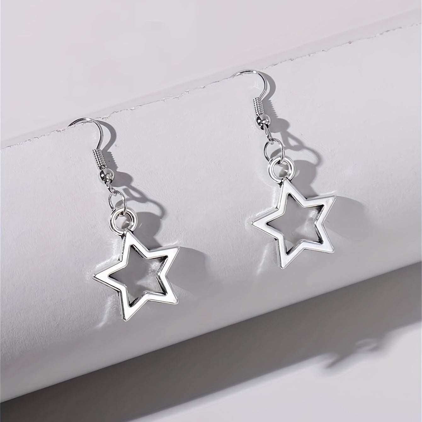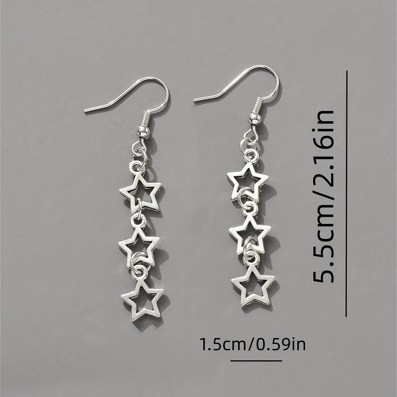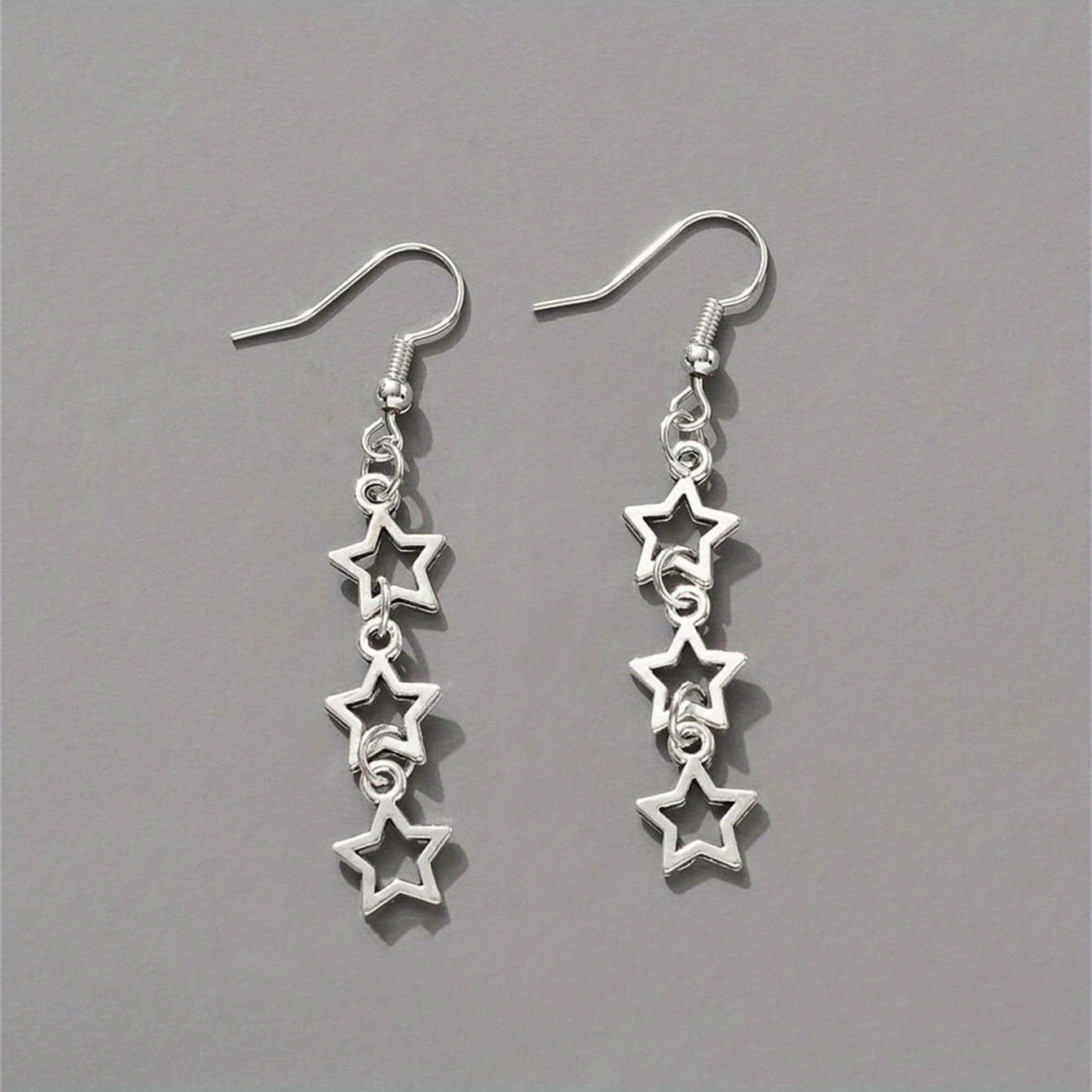 These long dangle earrings feature a retro Y2K style with a hollow pentagram design. Made of zinc alloy, these delicate earrings make a perfect gift for females.