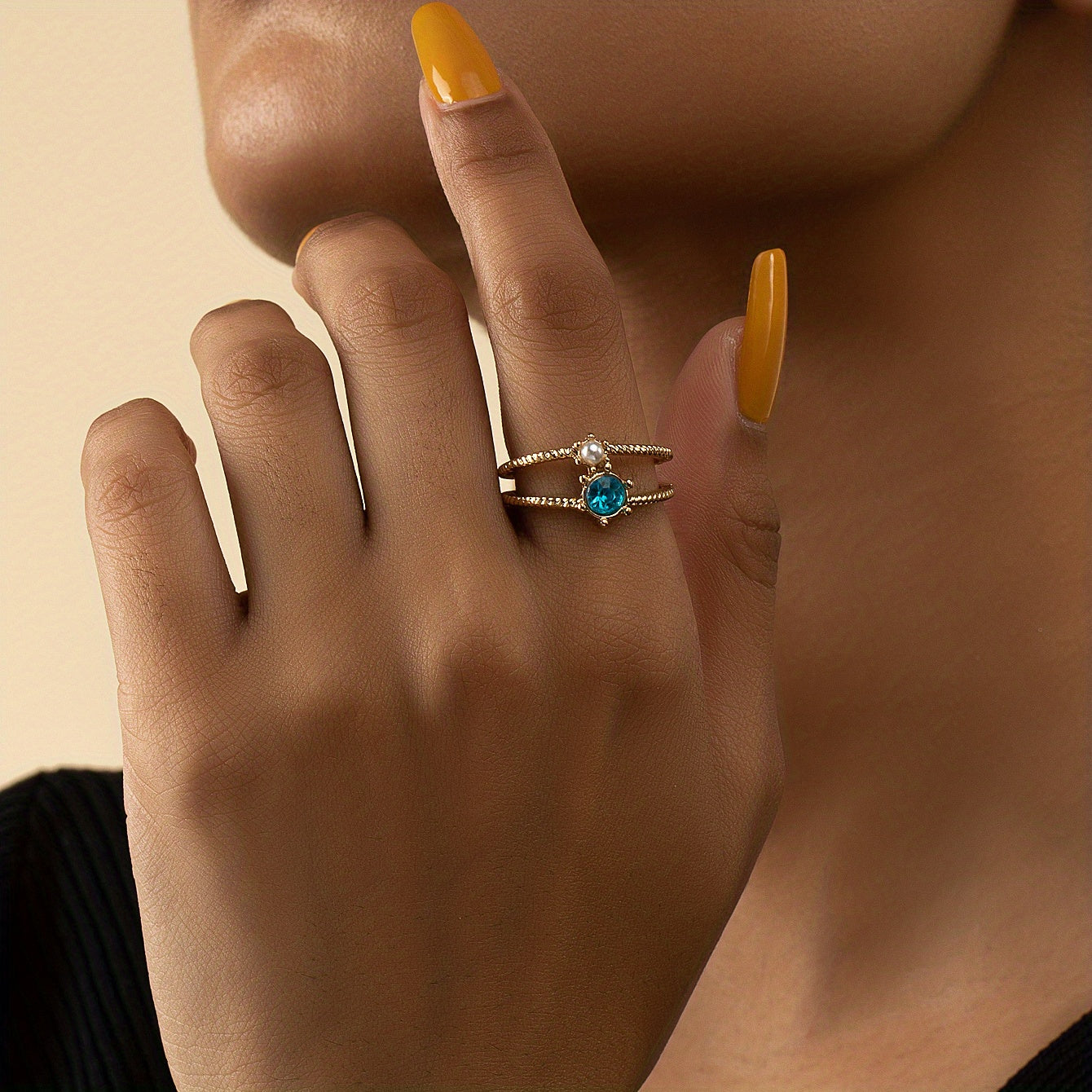 Add a touch of elegance and sparkle to your outfit with this hollow ring featuring a double layer design and inlaid rhinestones. Perfect for parties and special occasions.