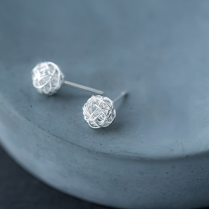 These elegant stud earrings are crafted with hollow silk balls plated in 925 silver. They make a perfect gift for women and girls.
