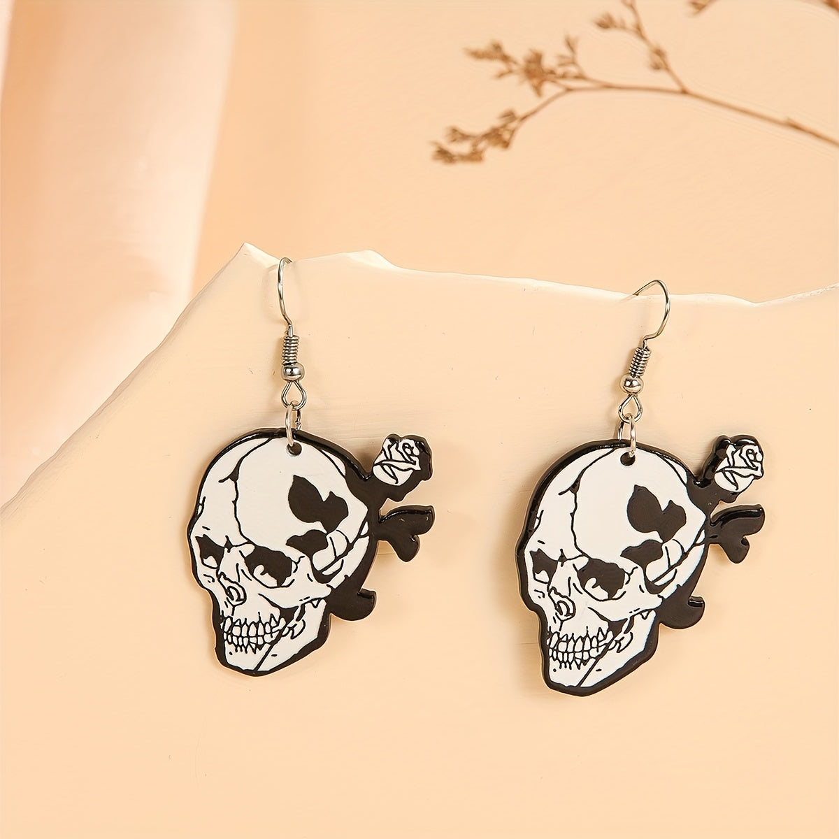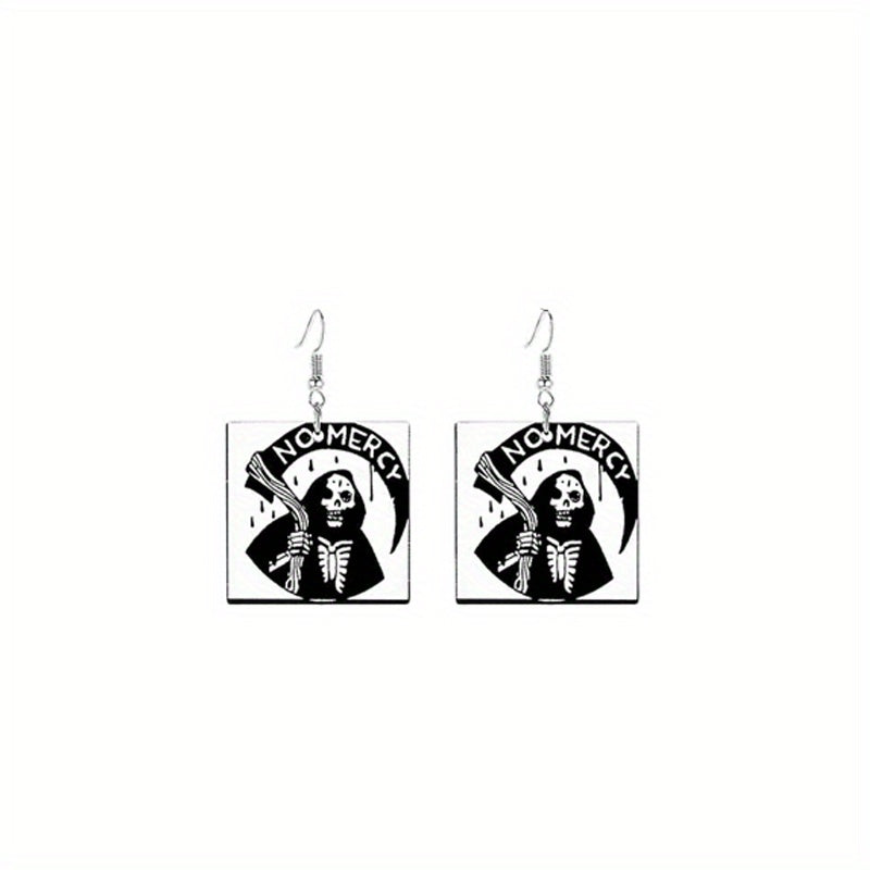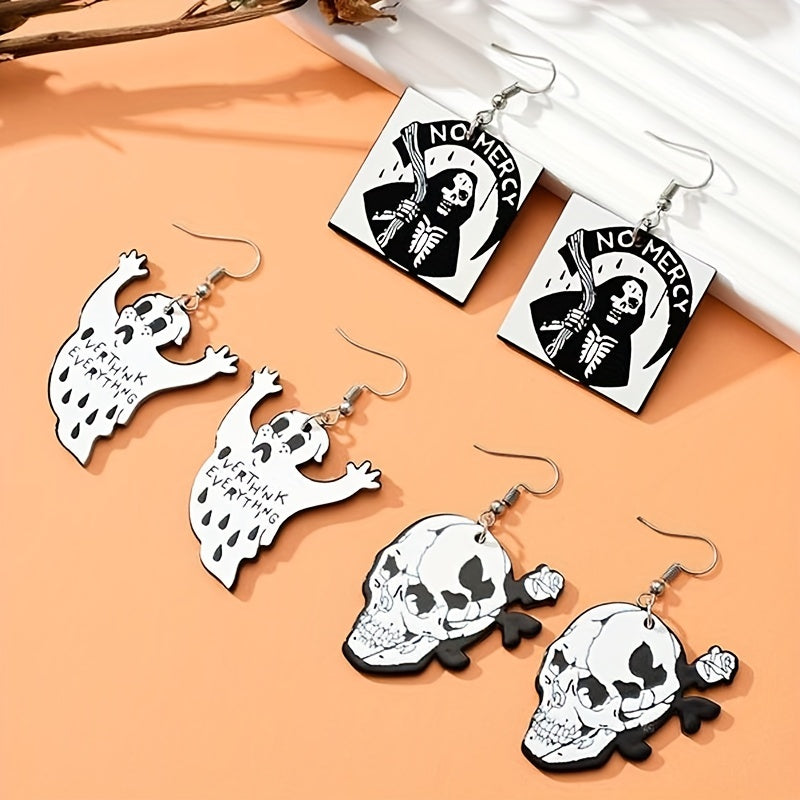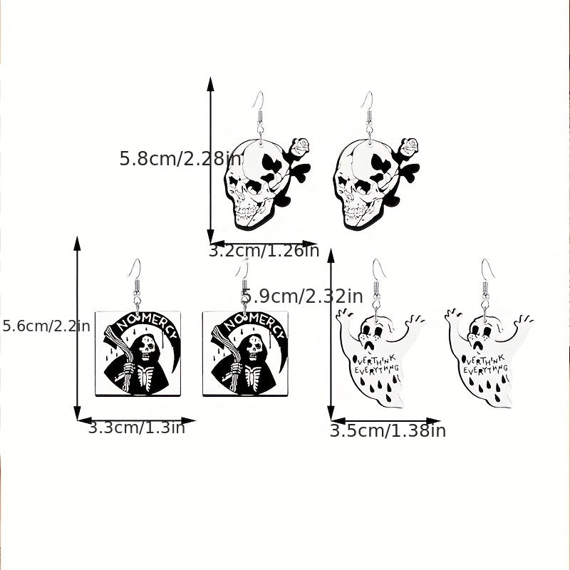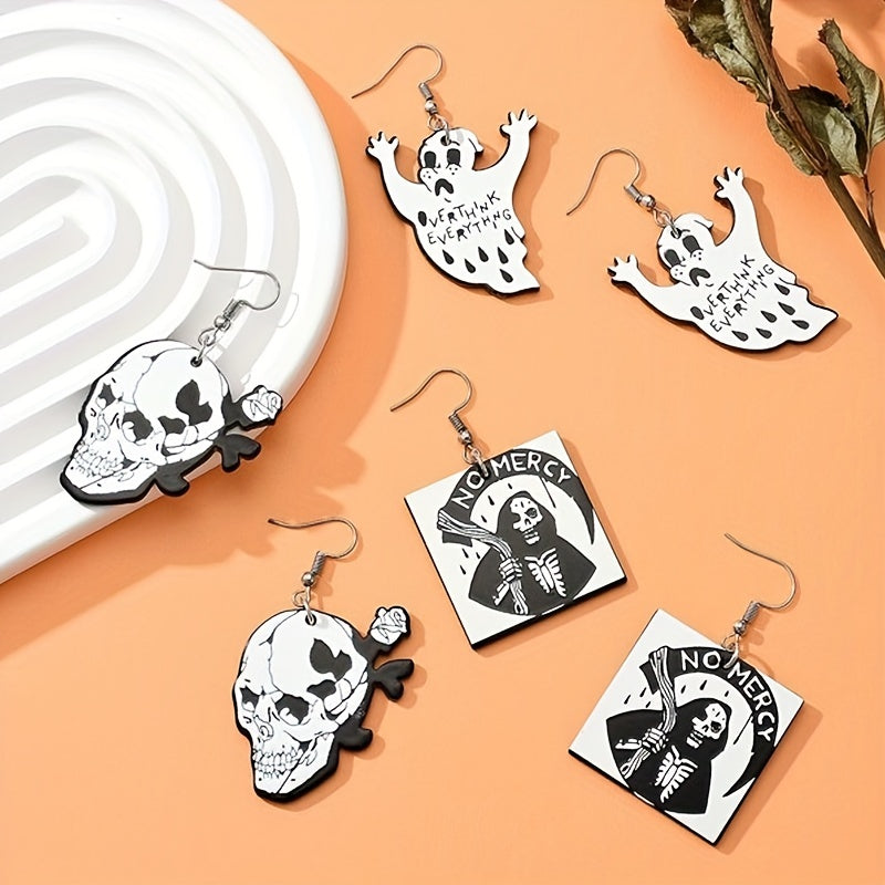 These dangle earrings are perfect for Halloween with their spooky skull and ghost design. Ideal for a hip hop or goth style look, these acrylic earrings make a unique and creative gift for any female recipient.