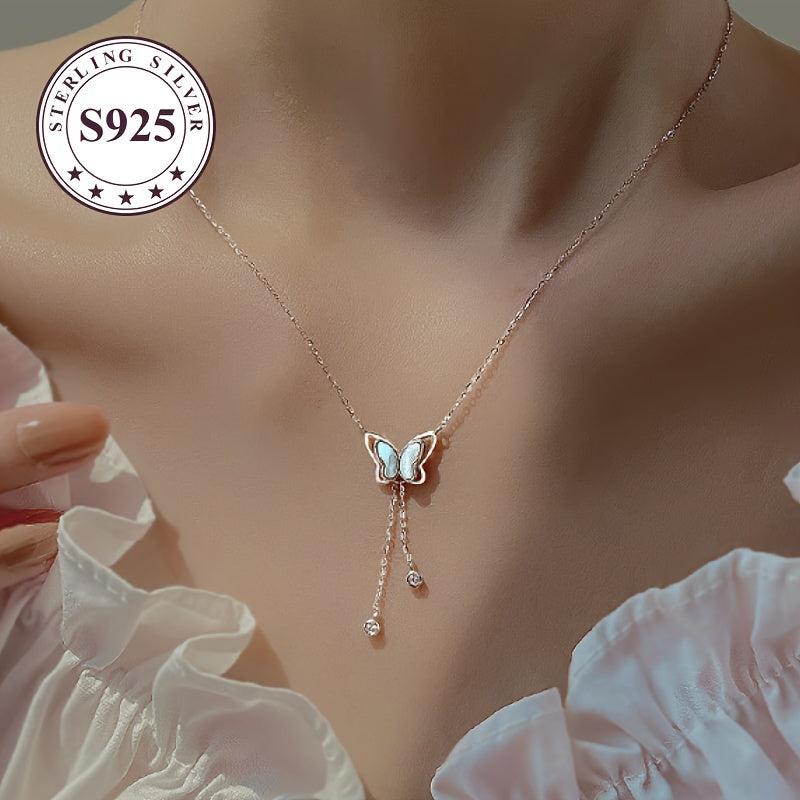 Hypoallergenic Butterfly Tassel Necklace Sweet Temperament Clavicle Chain