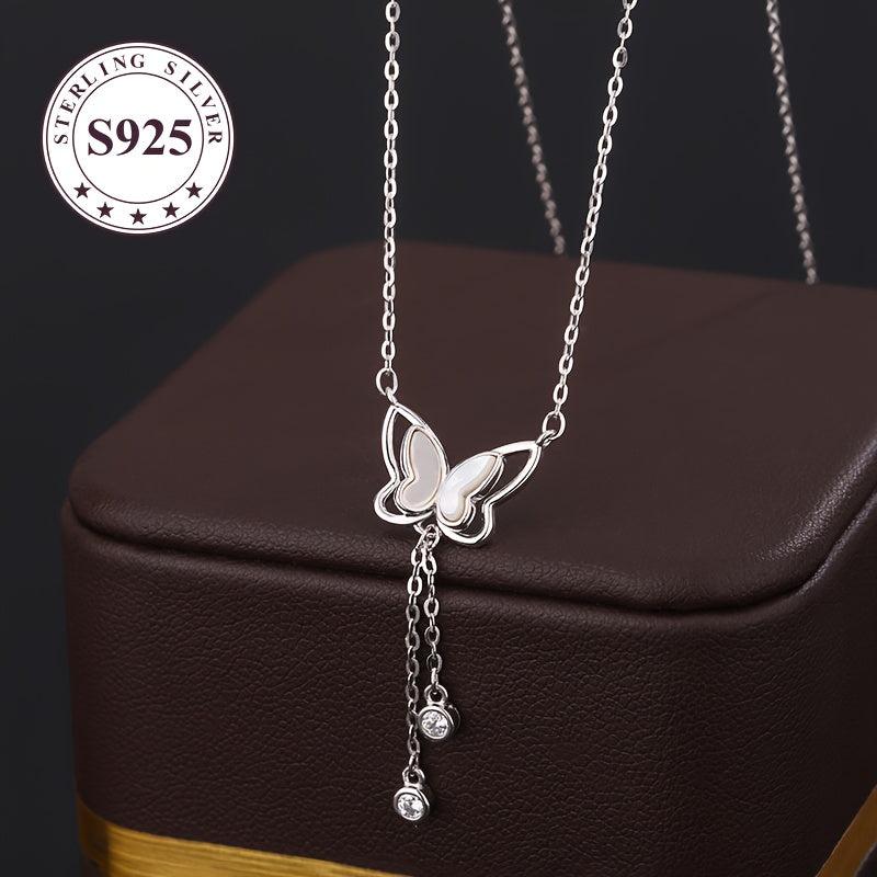 This delicate necklace features a butterfly design with tassel details, perfect for adding a touch of sweet charm to any outfit. A great gift for mothers or any special occasion.