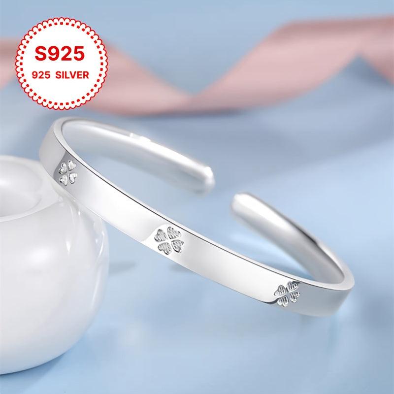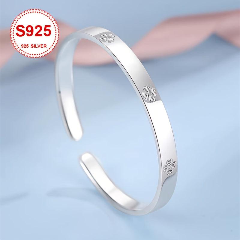 This minimalist clover bracelet and ring bangle set is hypoallergenic and perfect for ladies. It's a unique and lucky gift for mothers with anti-oxidation properties. Comes in a storage box, suitable for gifting.