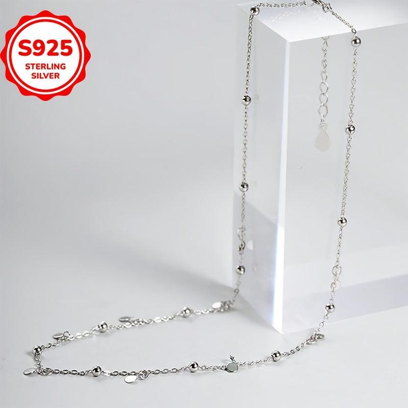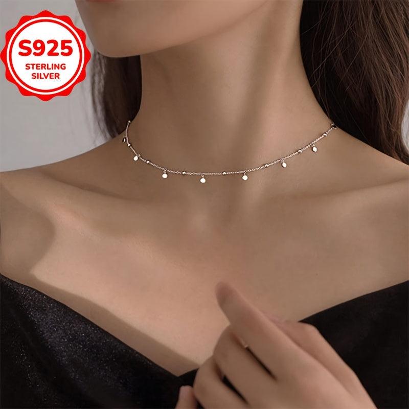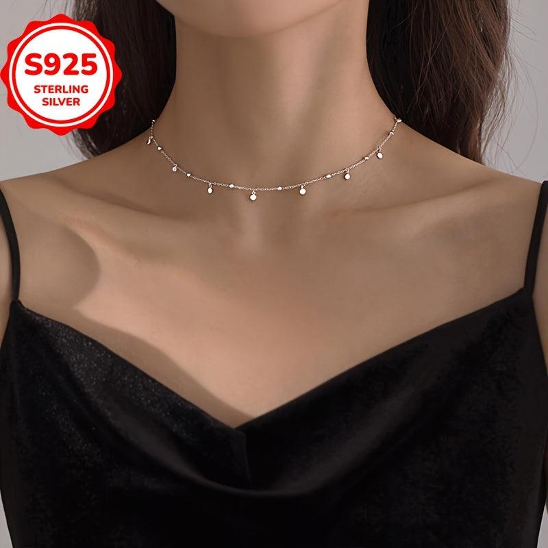 This unique minimalist chain is suitable for all seasons. A short collarbone necklace featuring round beads and tassel design that is hypoallergenic.