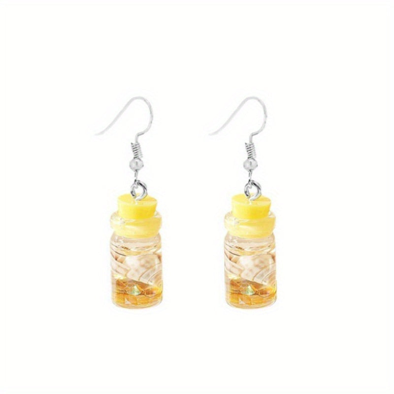 These unique dangle earrings feature irregular transparent ice beer glasses bottle design. Perfect for daily casual wear.