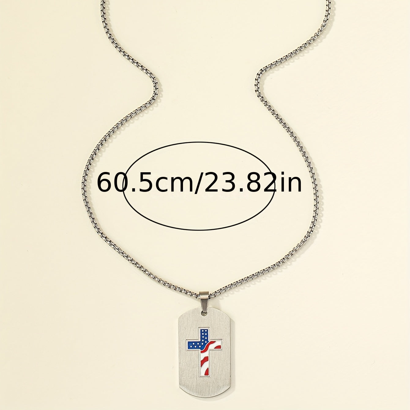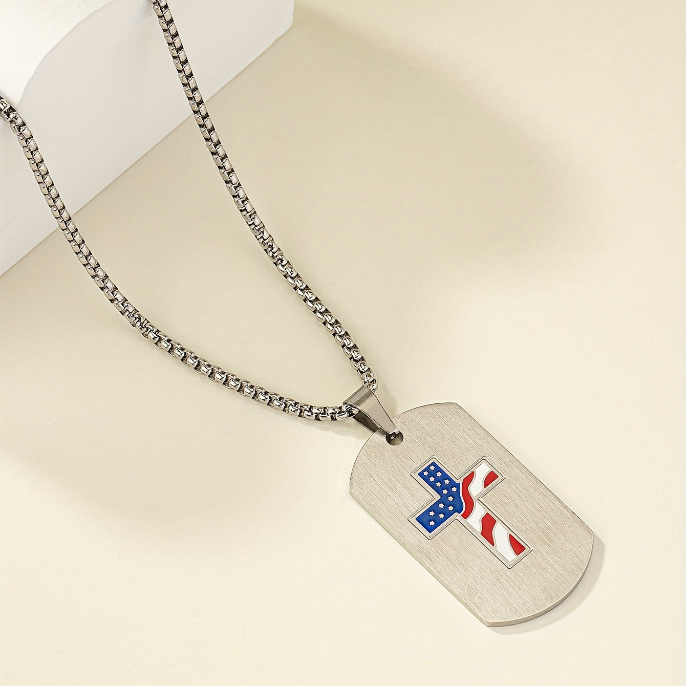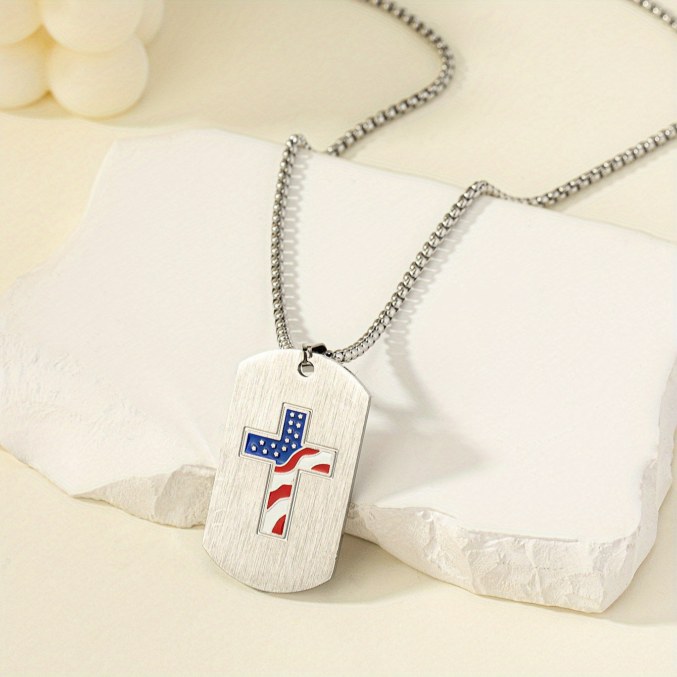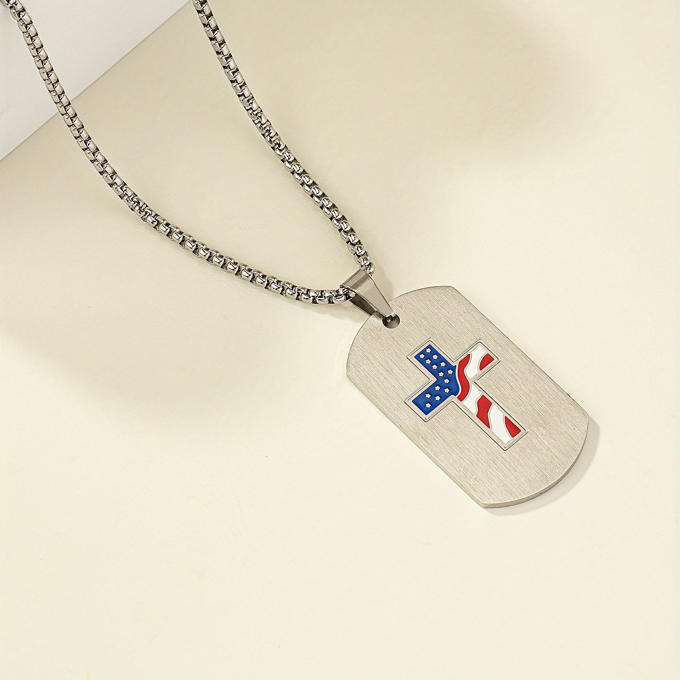 This unisex necklace is a perfect party ornament made of stainless steel. It features a tag shape with a cross flag pattern, suitable for both women and men.
