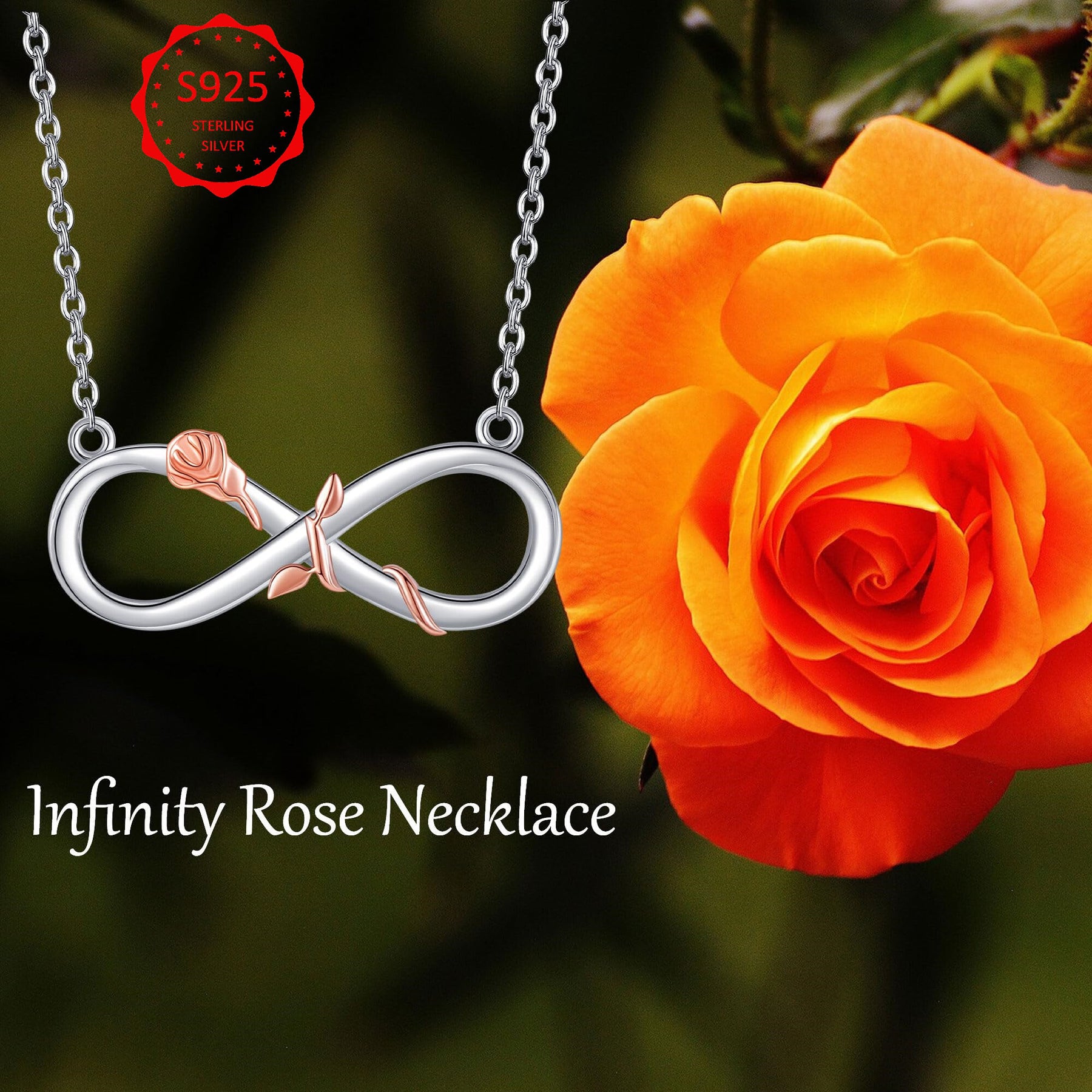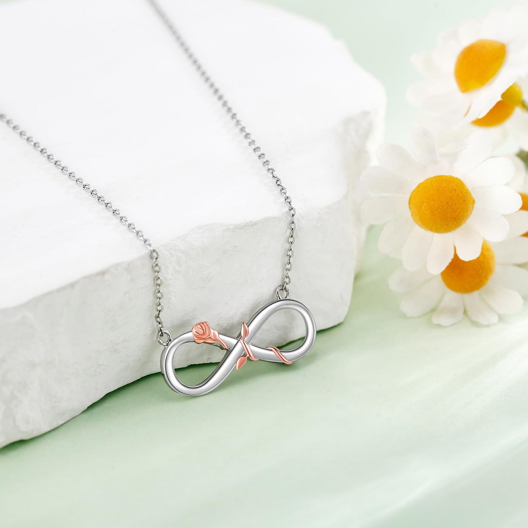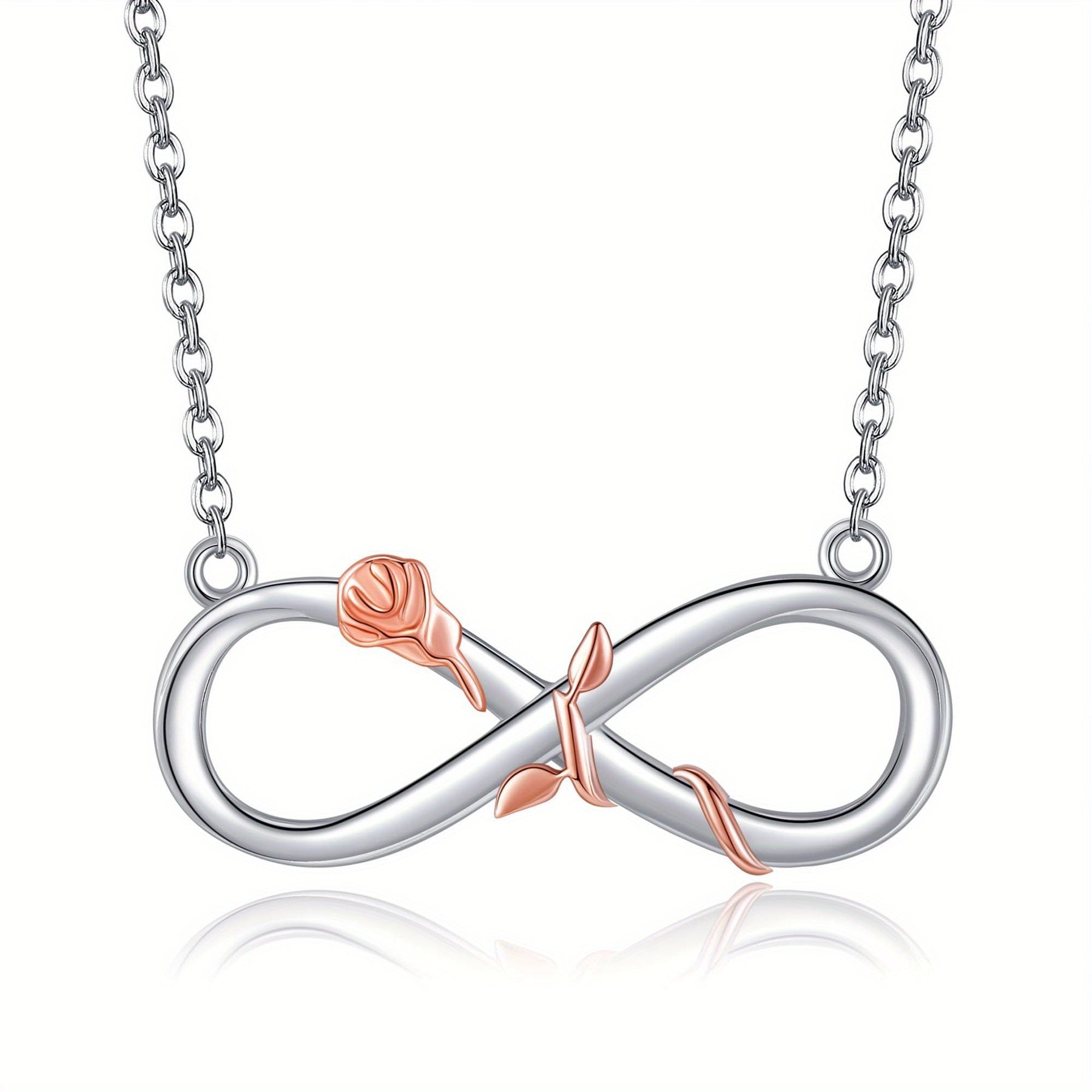 This elegant necklace features an infinite symbol pendant plated in silvery and rose gold, making it a perfect gift for ladies.