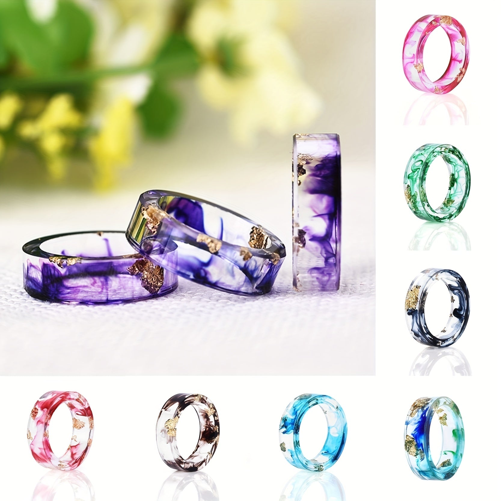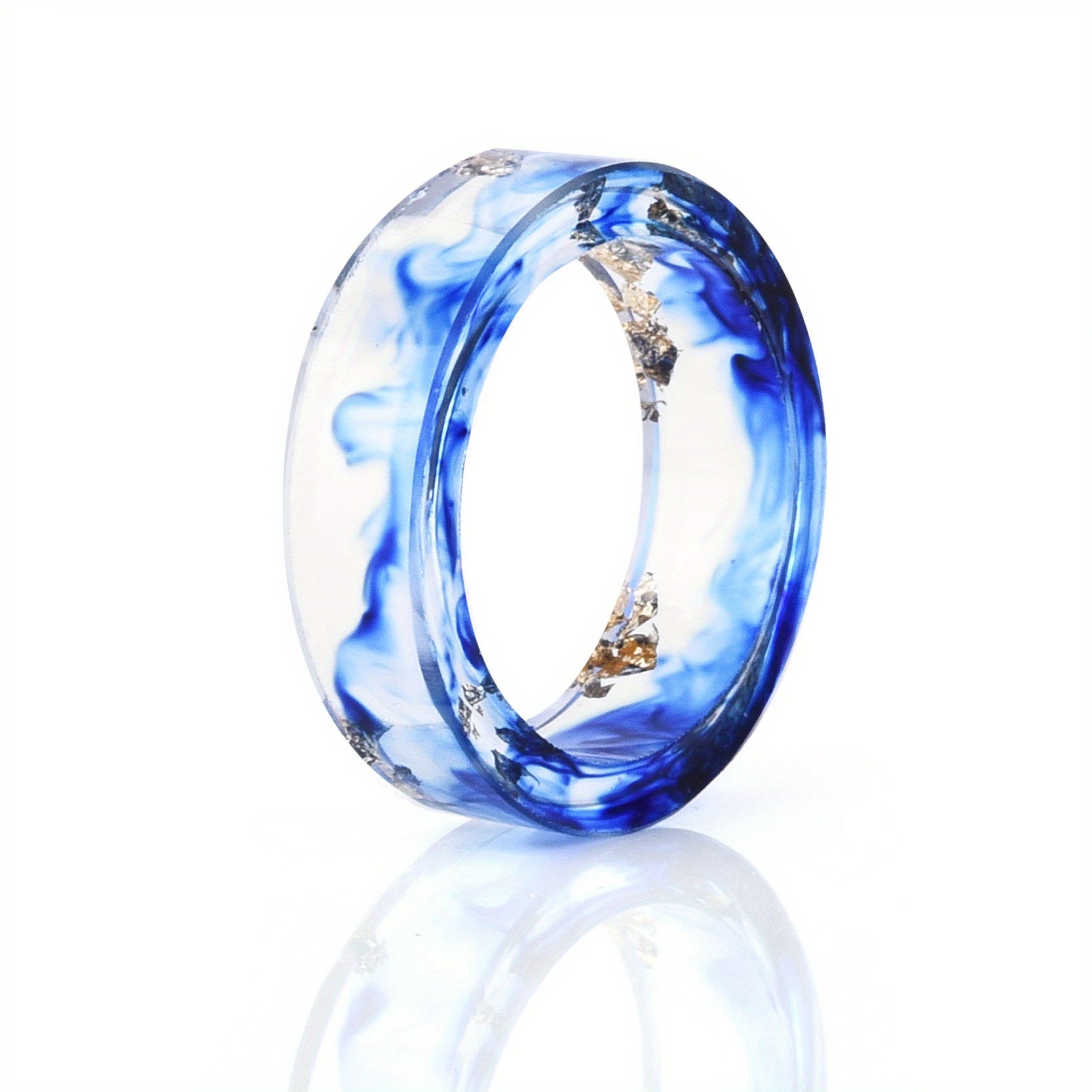 This stunning ring features a gradient transparent acrylic resin band with dried flowers encapsulated in an ink painting style. Perfect for weddings or anniversaries.