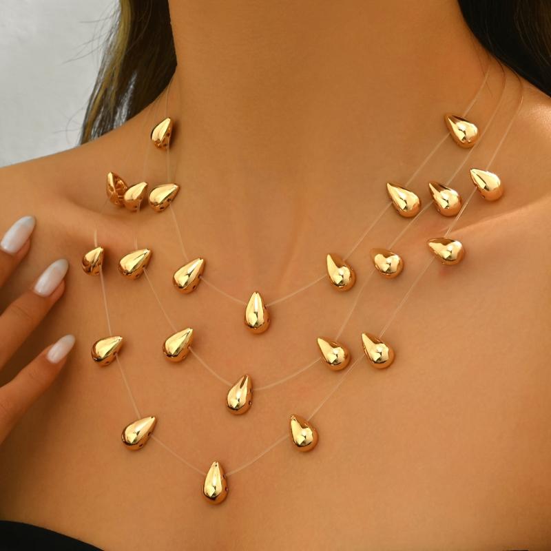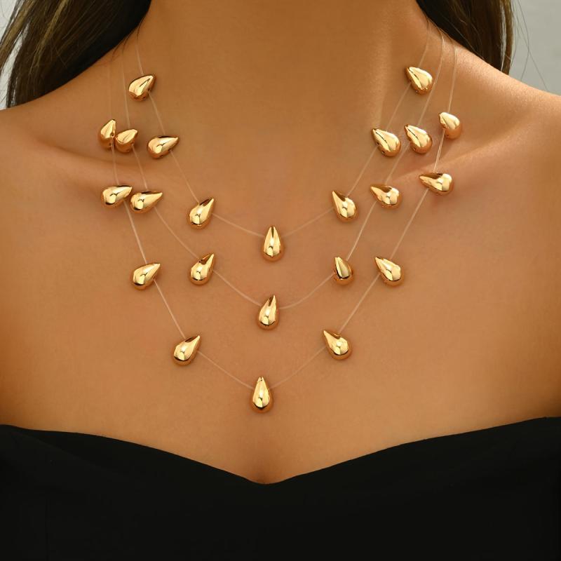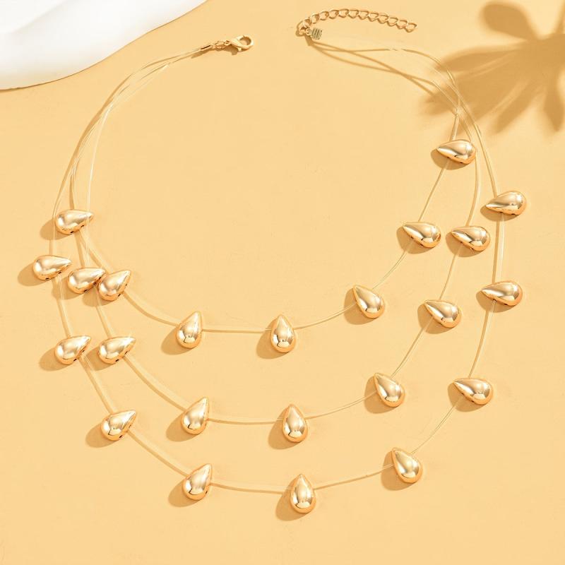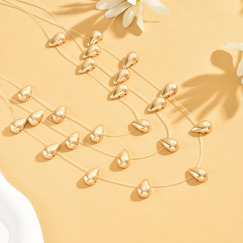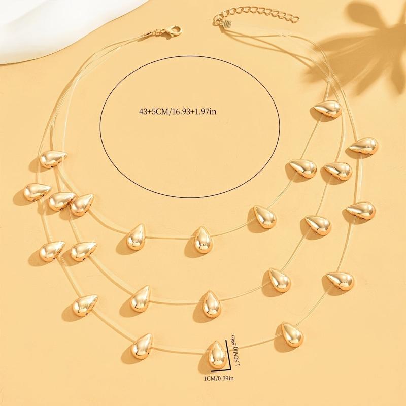 This minimalist necklace features small water droplet pendants on a 3-layer invisible fishing line. Made of zinc alloy, it is perfect for casual attire year-round.