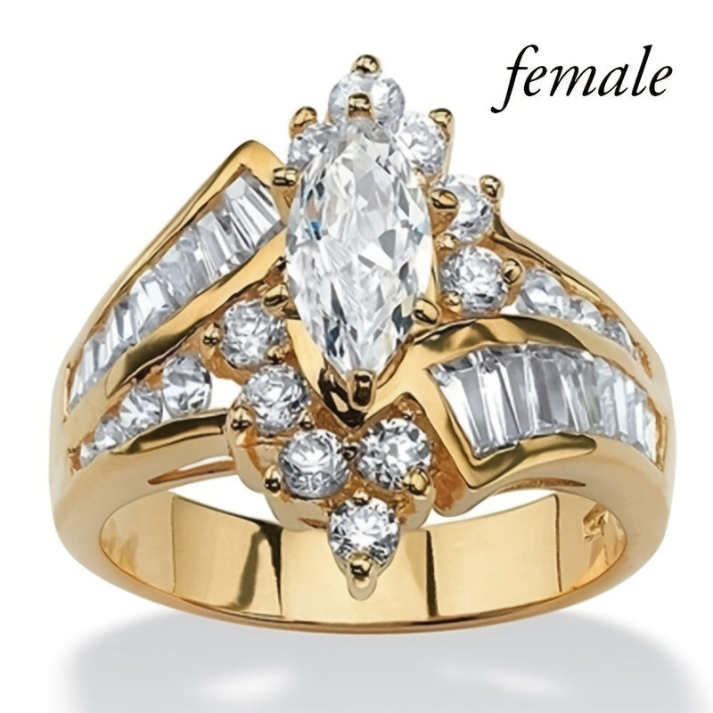 This stunning ring features an irregular marquise cut cubic zirconia inlaid design. It is plated with 18K gold and makes a perfect hand jewelry gift for women or men.