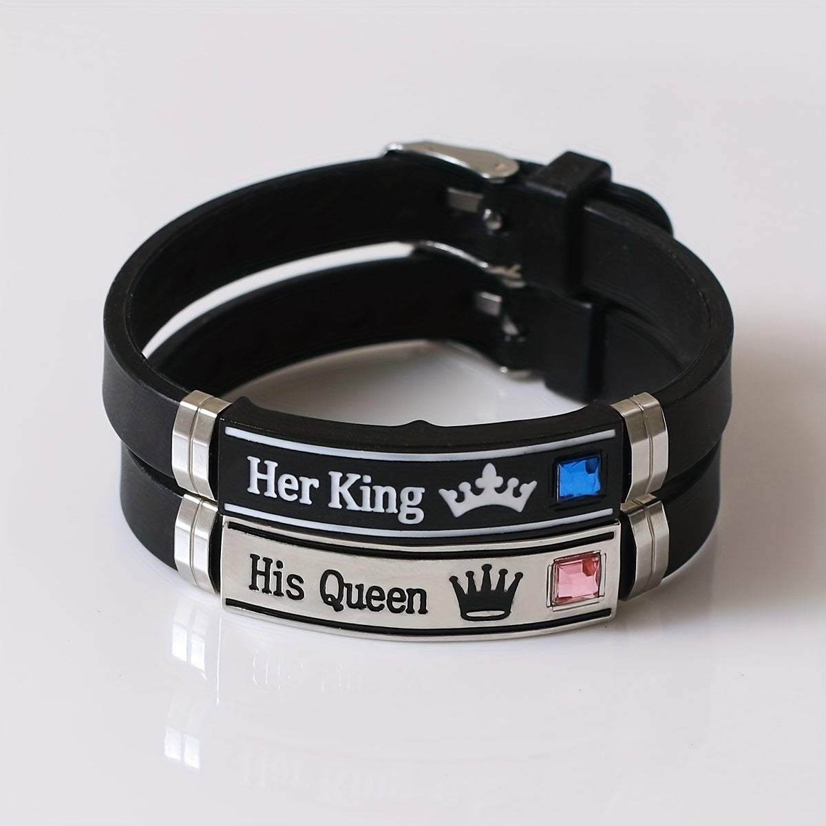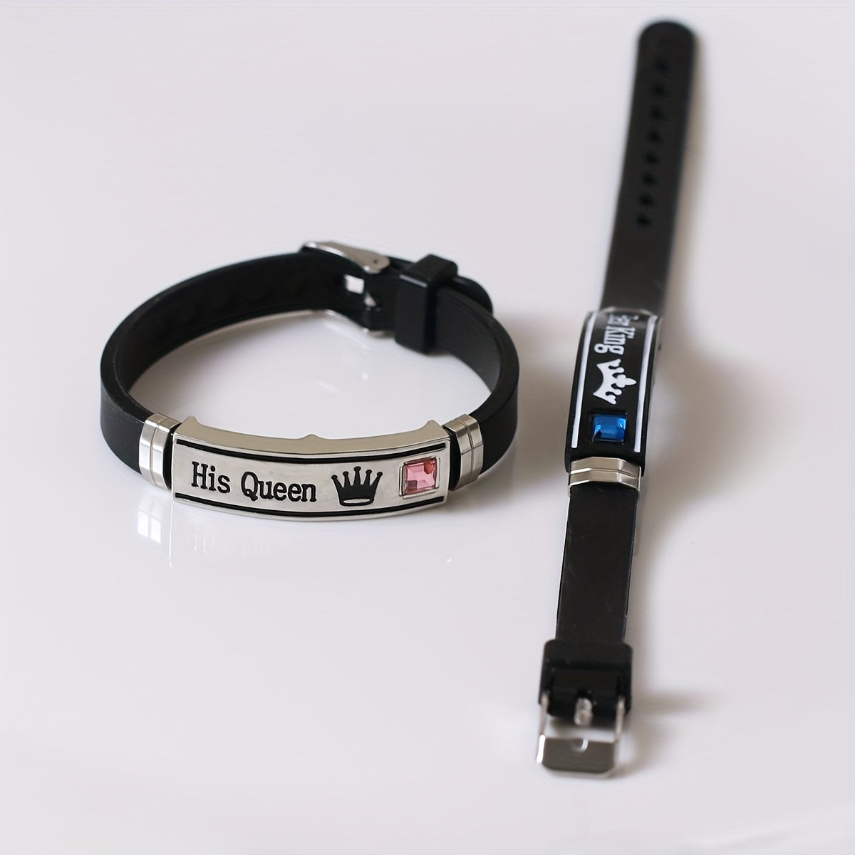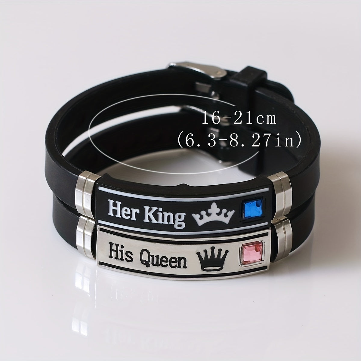 Enhance your style with this trendy King Queen pattern silicone bangle bracelet. Perfect for couples, this set includes 2 pieces for you and your partner to show off your bond.