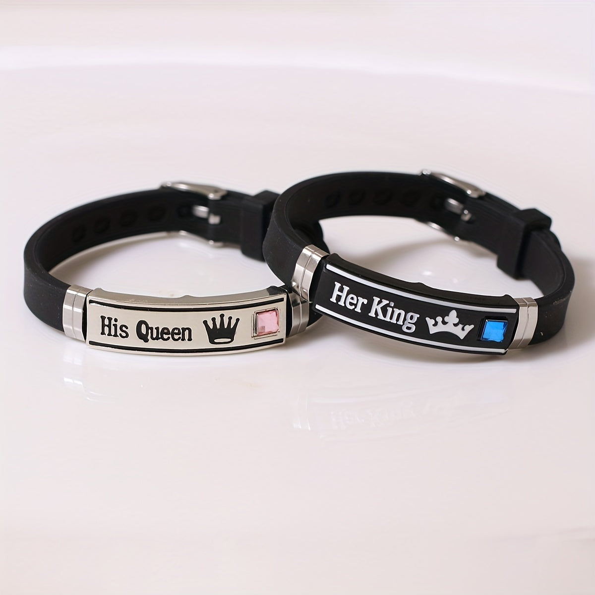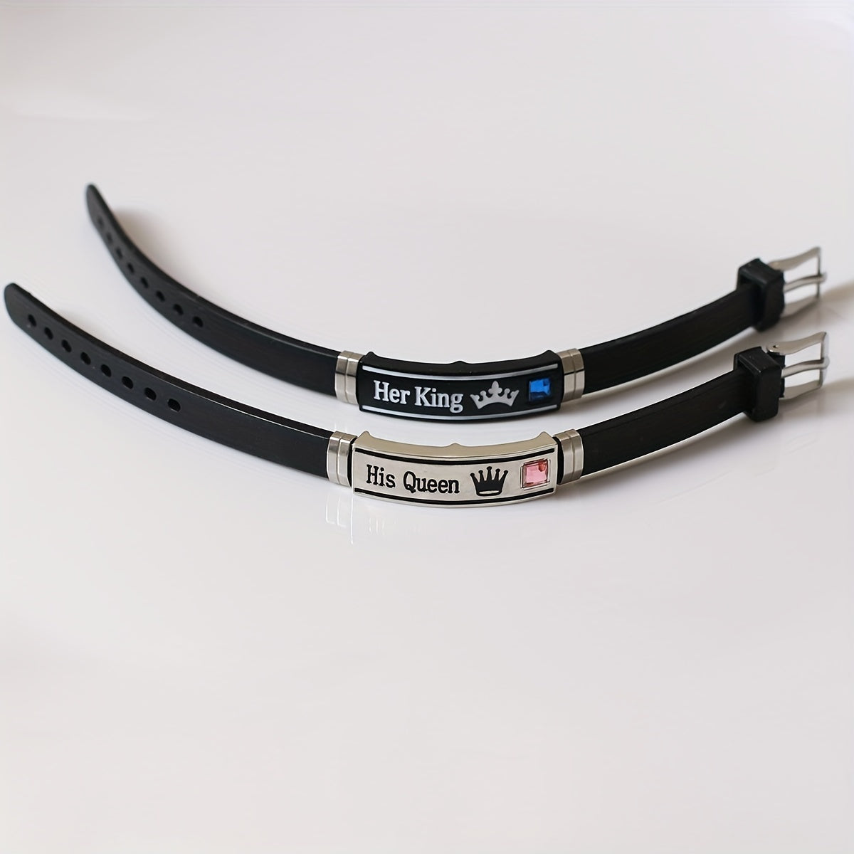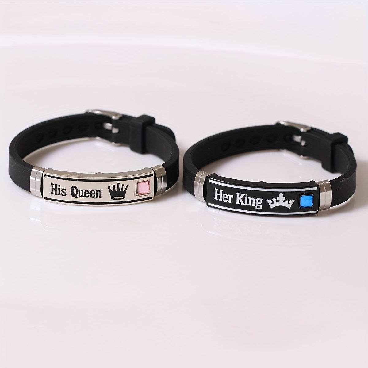Enhance your style with this trendy King Queen pattern silicone bangle bracelet. Perfect for couples, this set includes 2 pieces for you and your partner to show off your bond.